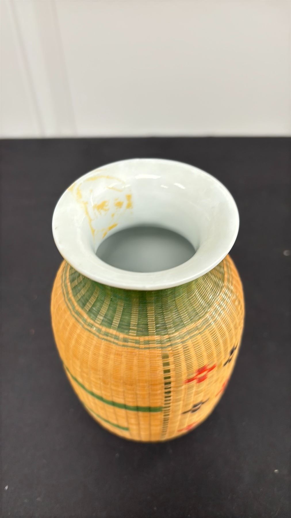 WOVEN CREAM GREEN BAMBOO WRAPPED VASE