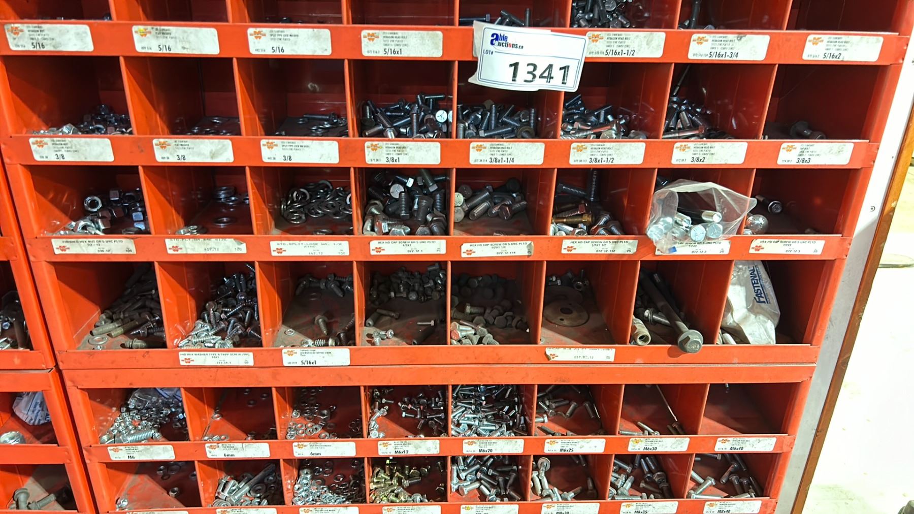 WURTH NUT AND BOLT CABINET WITH CONTENTS. 34" X 50" STANDARD NUTS, BOLTS, WASHERS