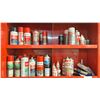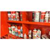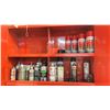 WURTH WALL MOUNT CABINETS WITH CONTENTS. TINS OF WURST RUST RELEASE, SPRAY LUBES, BATTERY CLEANER, BELT DRESSING, ETC. 2 CABINETS ARE 34" X 22" EACH