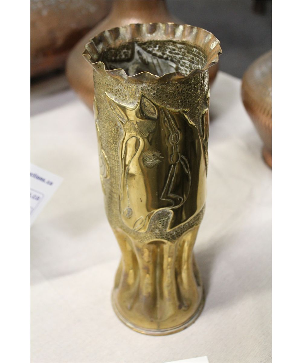 WWII (1941) HAND CARVED SHELL CASING FROM EAST AFRICA, CARVED BY ITALIAN PRISONERS OF WAR