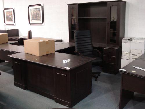 Walnut Executive Double Ped U-Shaped Suite C/w Glass Hutch