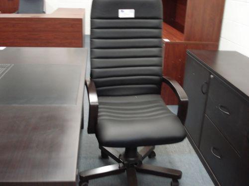Walnut Framed Black Leather Highback Chair