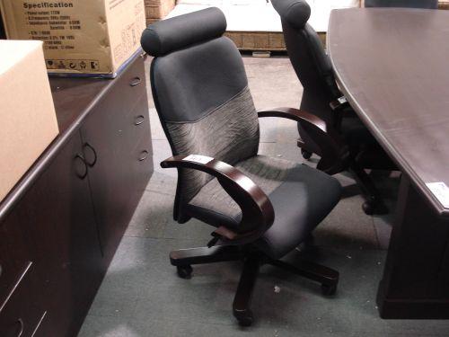 Walnut Framed Grey Mesh Cloth Gaslift Chair