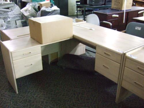 Washed Oak L-shape Double Pedestal Office Suite (left Hand)