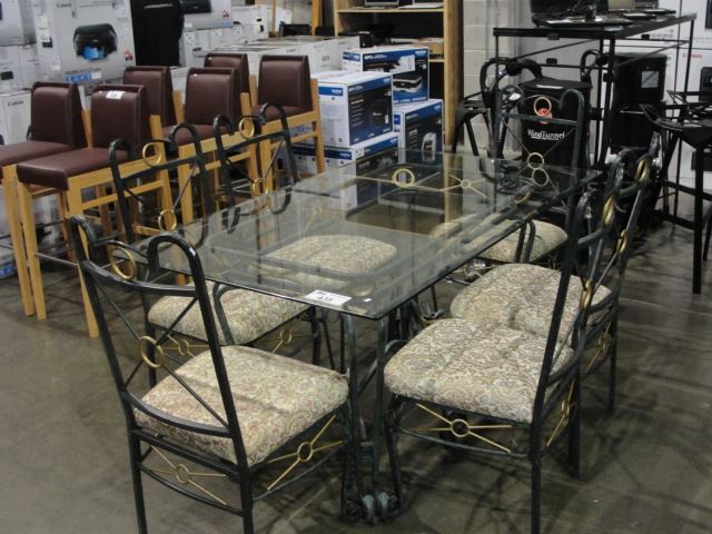 X AND O GLASS TOP 7PC TABLE SET; TABLE WITH 6 CHAIRS