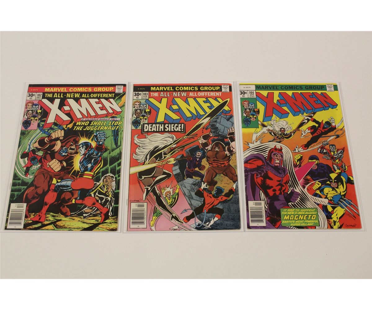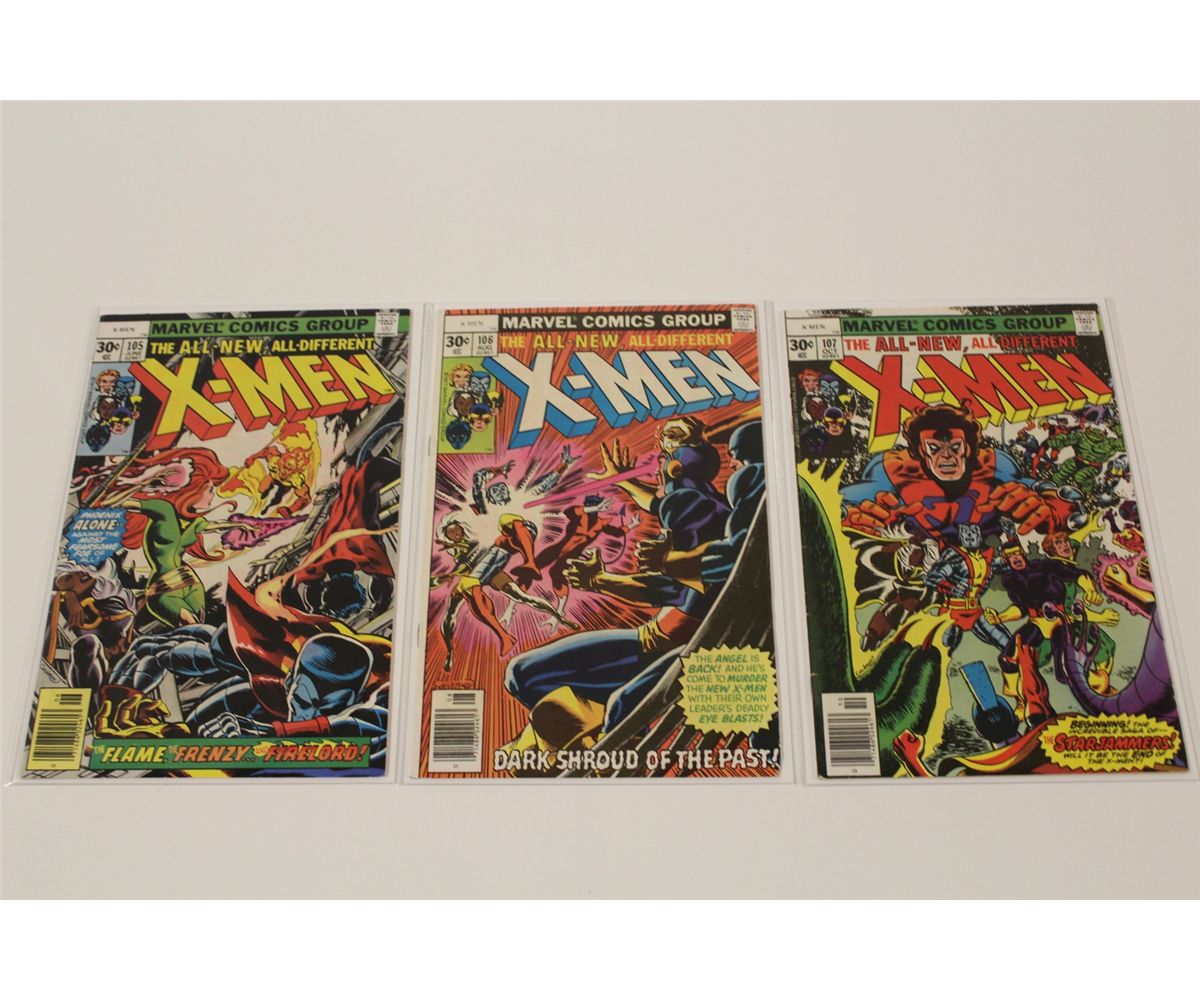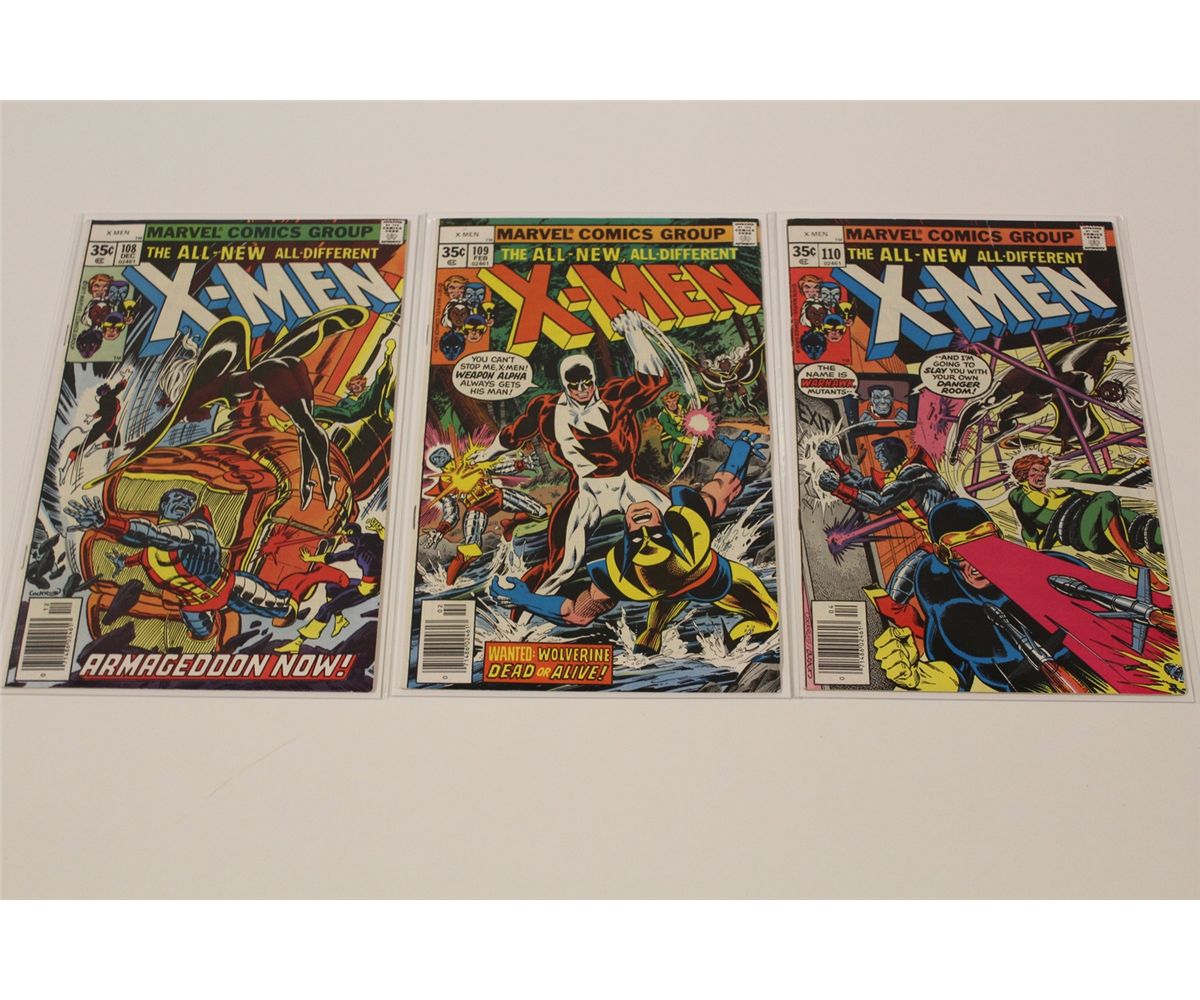 X-MEN #102-110 CONSECUTIVE (1976-78) BRONZE AGE RUN OF 9 EARLY NEW X-MEN! #102 - ORIGIN STORM, #108 - 1ST BYRNE ART, #109 - 1ST APP. VINDICA SHARP MID TO HIGHER MID GRADE AVERAGE, GLOSSY, TIGHT & SUPPLE, VERY NICE RUN! 2013 OVERSTREET TOP END GUIDE VALUE OF $1,140