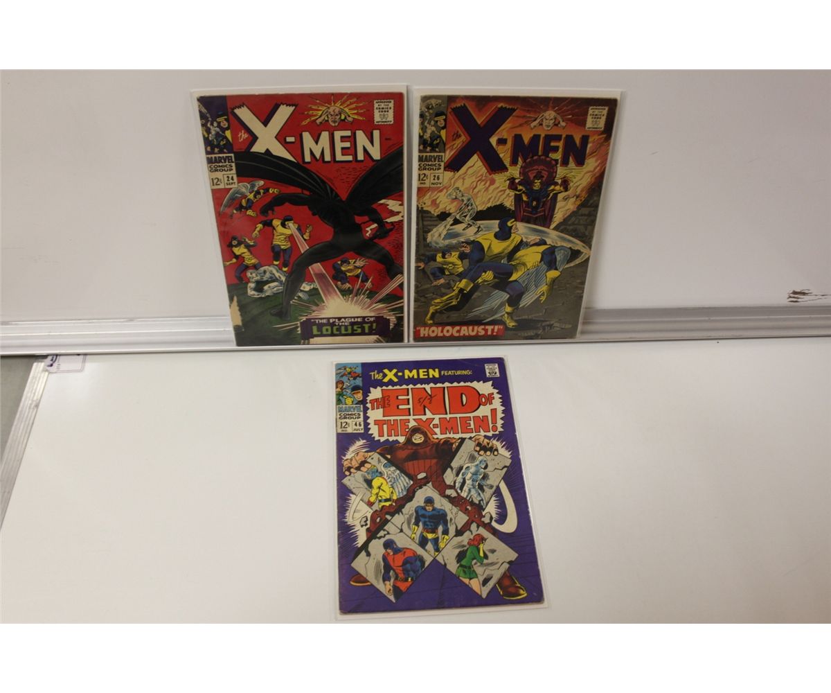 X-MEN 1966 -68 RUN - 3 ISSUES :#24, 26 & 46. SOLID MID GRADE AVERAGE.