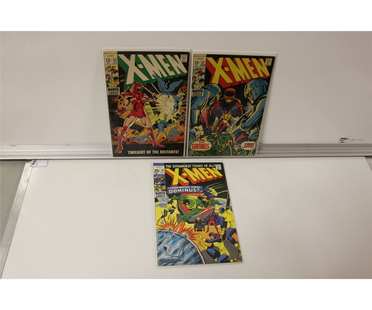 X-MEN 1969-71 RUN - 3 ISSUES : 52, 57 & 72. HIGH MID GRADE AVERAGE. SOLID & SHARP.