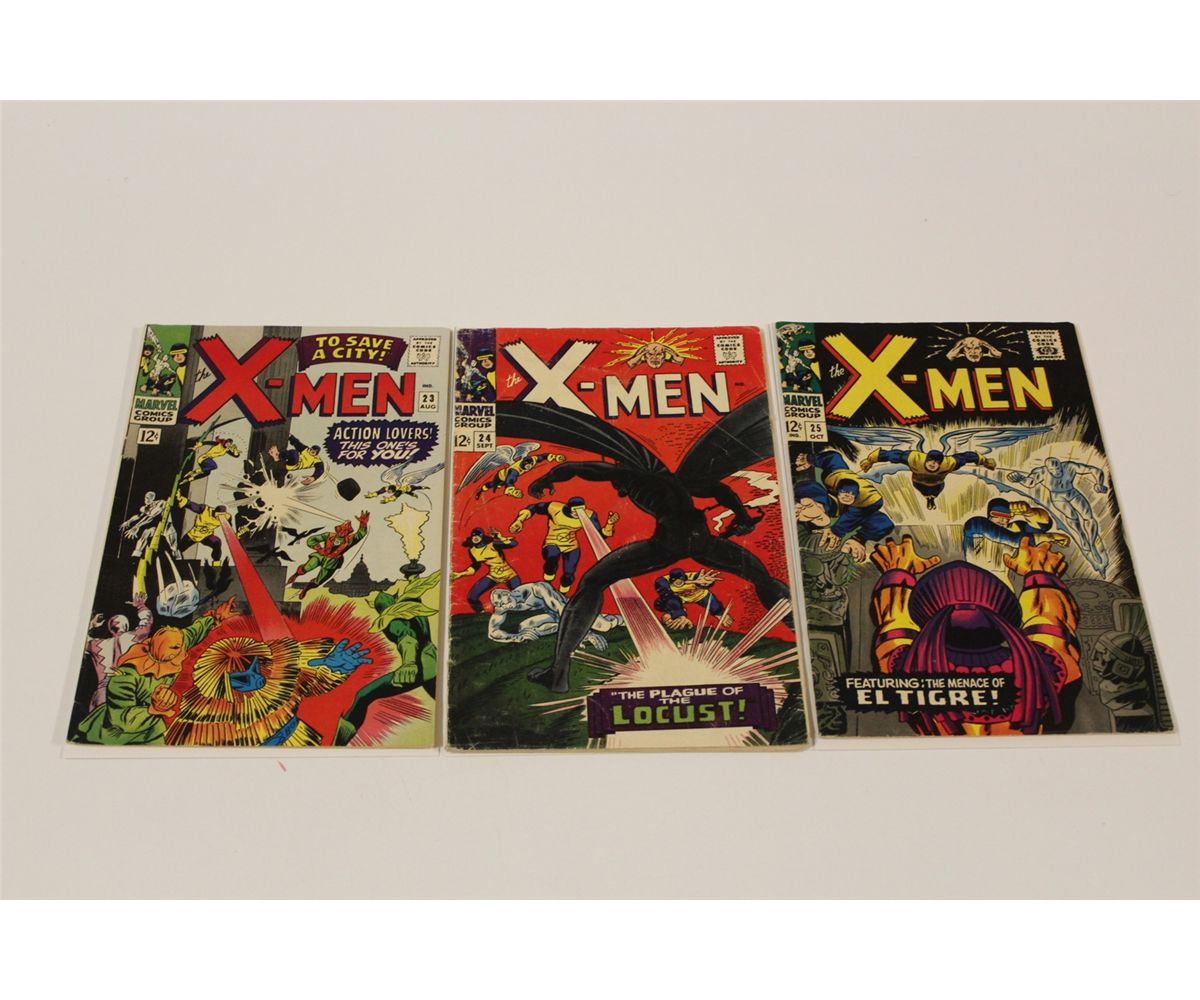 X-MEN #23, 24 & 25 (1966) 3 EARLY X-MEN. SOLID MID GRADE AVERAGE, GLOSSY, TIGHT & SUPPLE. VERY