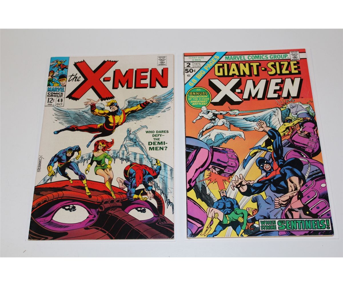 X-MEN #49 & GIANT SIZE #2 (1968 & '75) #49 - STERANKO COVER, GS #2 - ADAMS COVER. HIGH MID TO HIGH GRADE COPIES, GLOSSY, TIGHT AND SUPPLE. NICE!