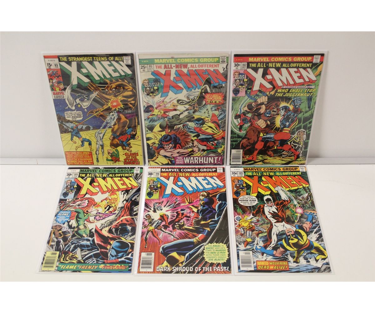 X-MEN #65, 95, 102, 105-106 & 109 (1969-76) MIXED GRADES, 6 BOOKS TOTAL.