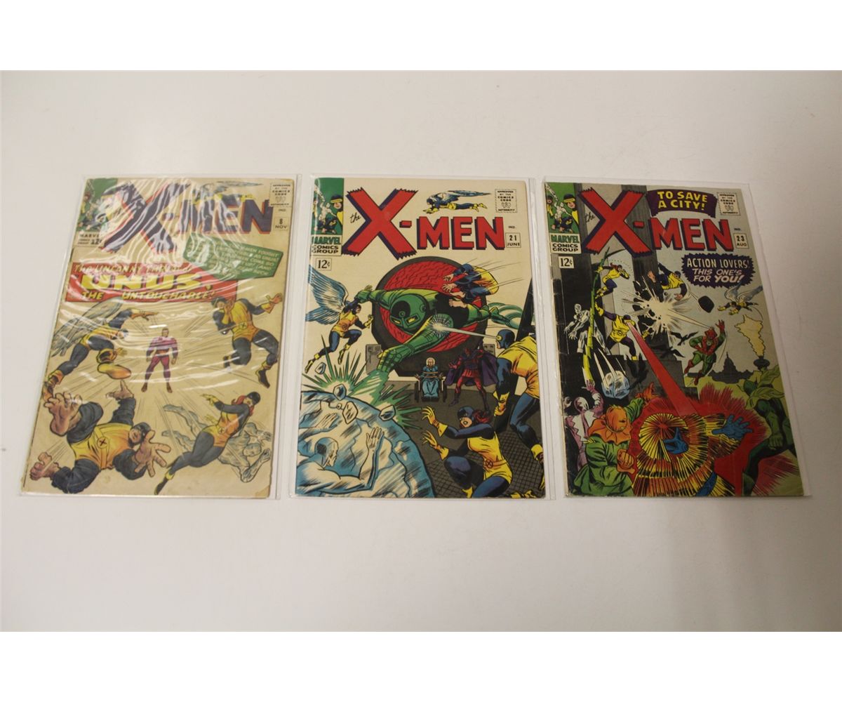 X-MEN #8, 21 & 23 (1964-66) 3 EARLY SILVER AGE X-MEN #8- LOW GRADE, MISSING PIN UP PAGE, #21 & 23 LOWER MID GRADE AVG
