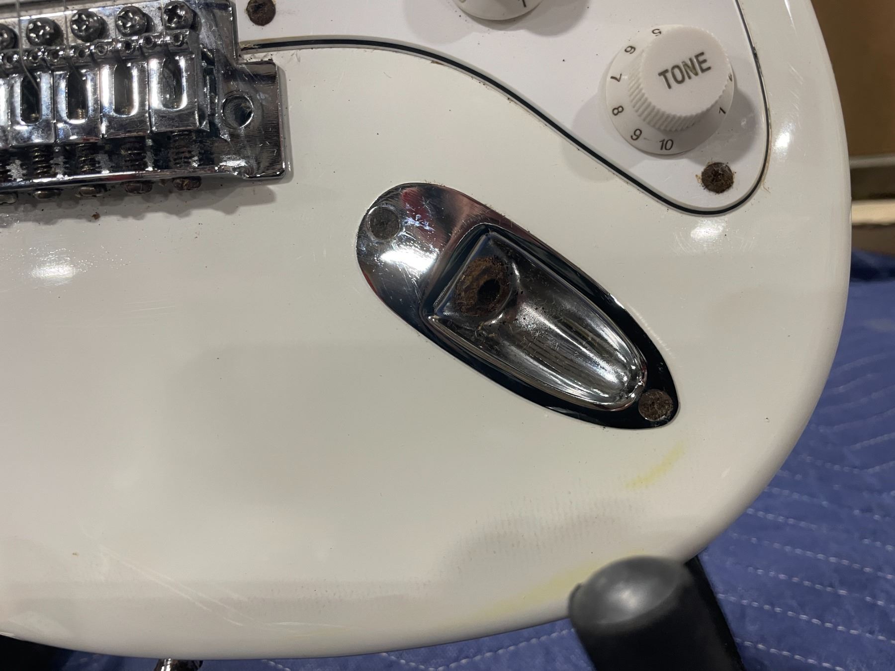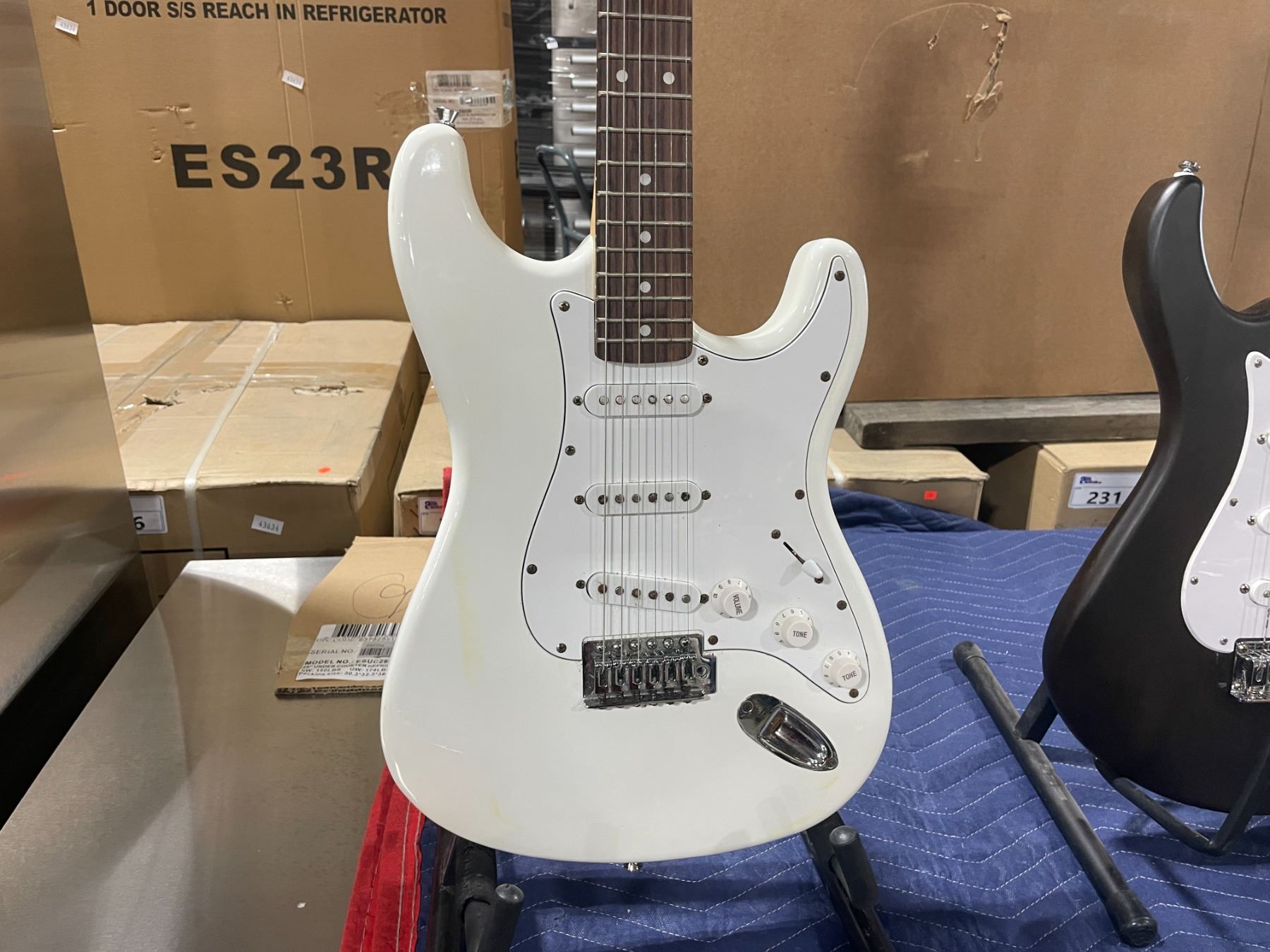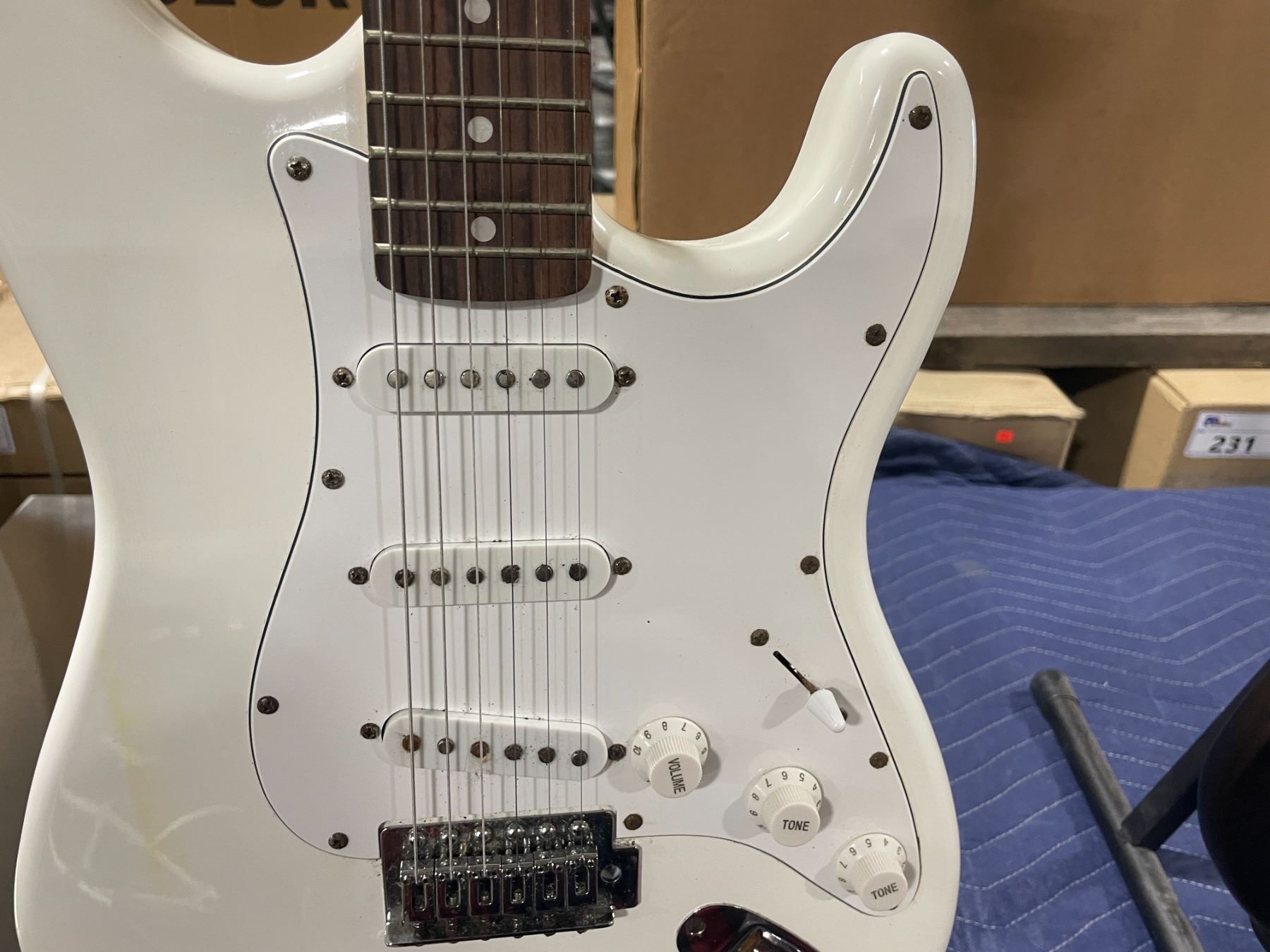 XS CUSTOM MADE VINTAGE SERIES WHITE WOOD BODY 6 STRING ELECTRIC GUITAR WITH WALNUT NECK ( INPUT RUSTY, GUARD SCREWS RUSTY WORKING CONDITION UNKNOWN )