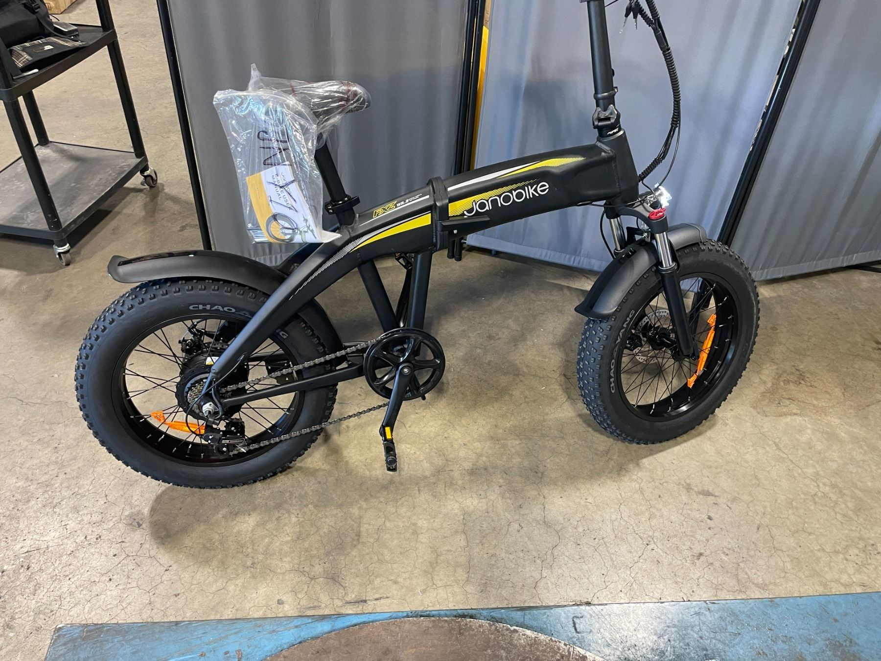 Y10 ELECTRIC BIKE, FOLDABLE E-BIKE. 500W / 1000W MOTOR, 32 KMH MAX SPEED, 48 VOLT BATTERY, UP TO 75 KM RANGE, 4" X 20" TIRES, HYDRAULIC DISC BRAKES, 7 GEARS, 16" FRAME, 28 KG WEIGHT, FRONT FORK SUSPENSION, MAY OR MAY NOT INCLUDE LUGGAGE RACK, IN BOX