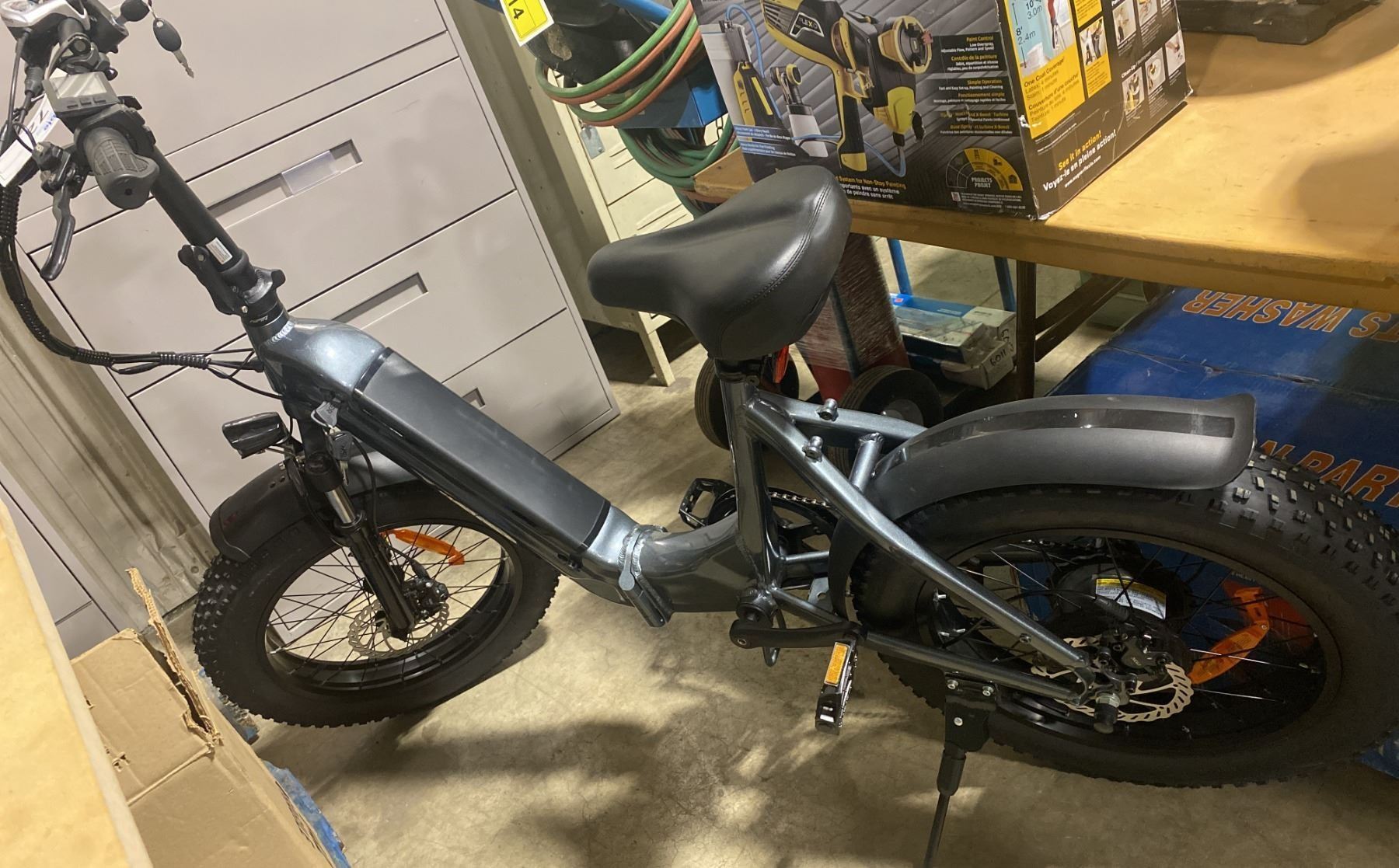 Y20 GREY ELECTRIC FOLDABLE E-BIKE WITH CHARGER - 75 KM RANGE, HYDRAULIC DISC BRAKES, 7 LEVELS, LCD DISPLAY, HEADLIGHT + TAILLIGHT MOTOR: 500W / 1000W MOTOR, 35 KMH MAX SPEED BATTERY: 48V TIRES: 4" X 20" *IN BOX*