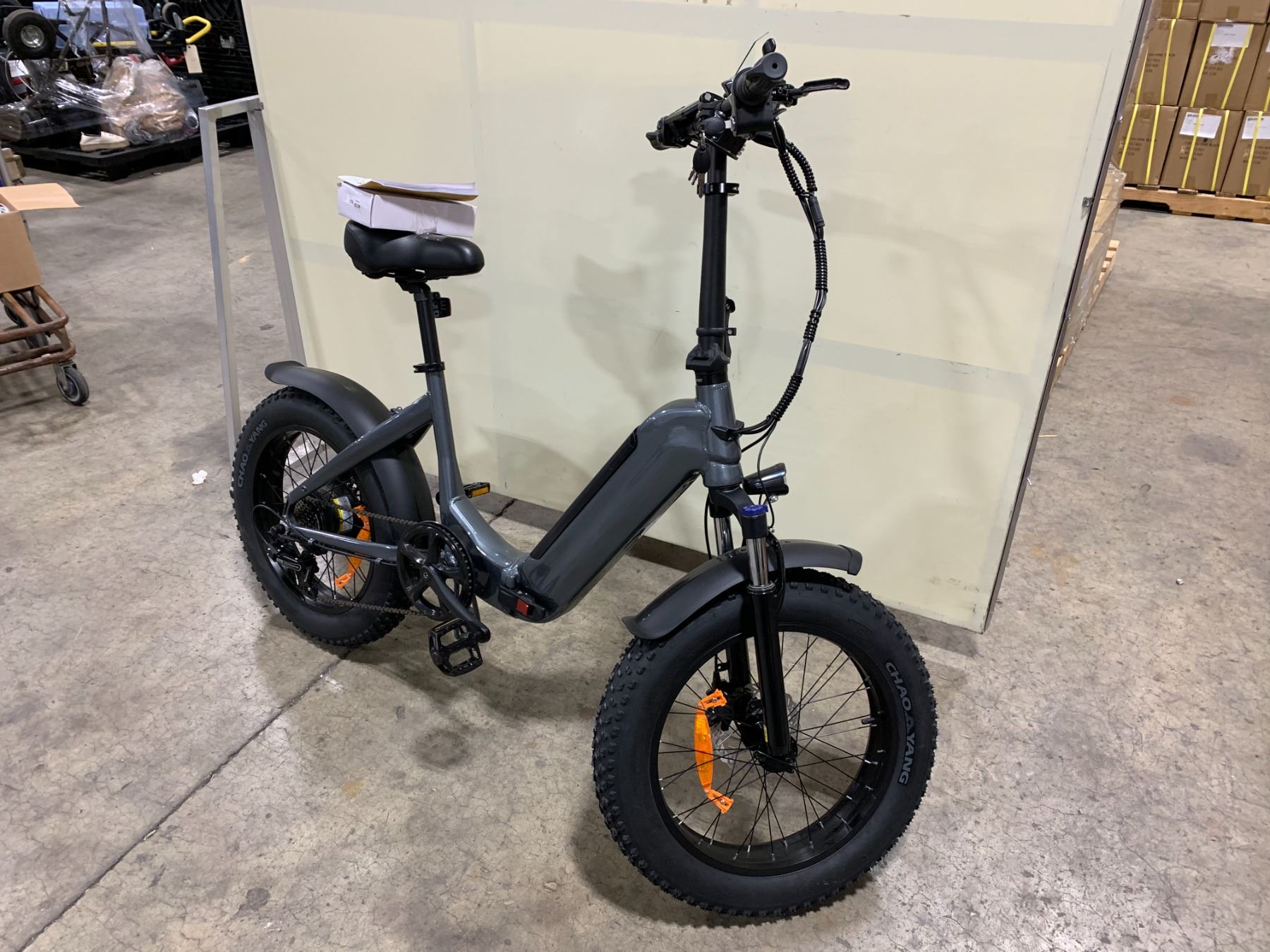 Y20 GREY ELECTRIC FOLDABLE E-BIKE WITH CHARGER - 75 KM RANGE, HYDRAULIC DISC BRAKES, 7 LEVELS, LCD DISPLAY, HEADLIGHT + TAILLIGHT MOTOR: 500W / 1000W MOTOR, 35 KMH MAX SPEED BATTERY: 48V TIRES: 4" X 20" *IN BOX*