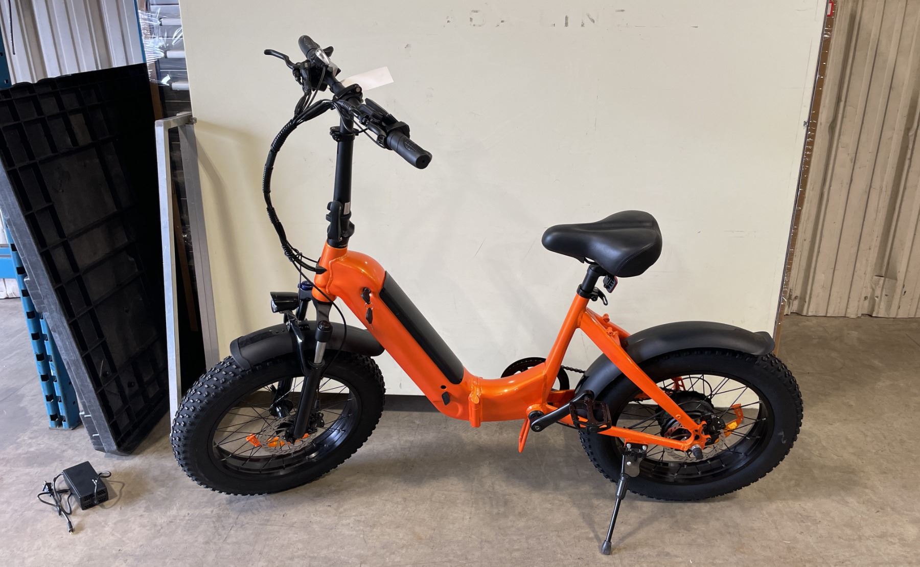 Y20 ORANGE ELECTRIC FOLDABLE E-BIKE WITH CHARGER - 75 KM RANGE, HYDRAULIC DISC BRAKES, 7 LEVELS, LCD DISPLAY, HEADLIGHT + TAILLIGHT MOTOR: 500W / 1000W MOTOR, 35 KMH MAX SPEED BATTERY: 48V TIRES: 4" X 20" *IN BOX*