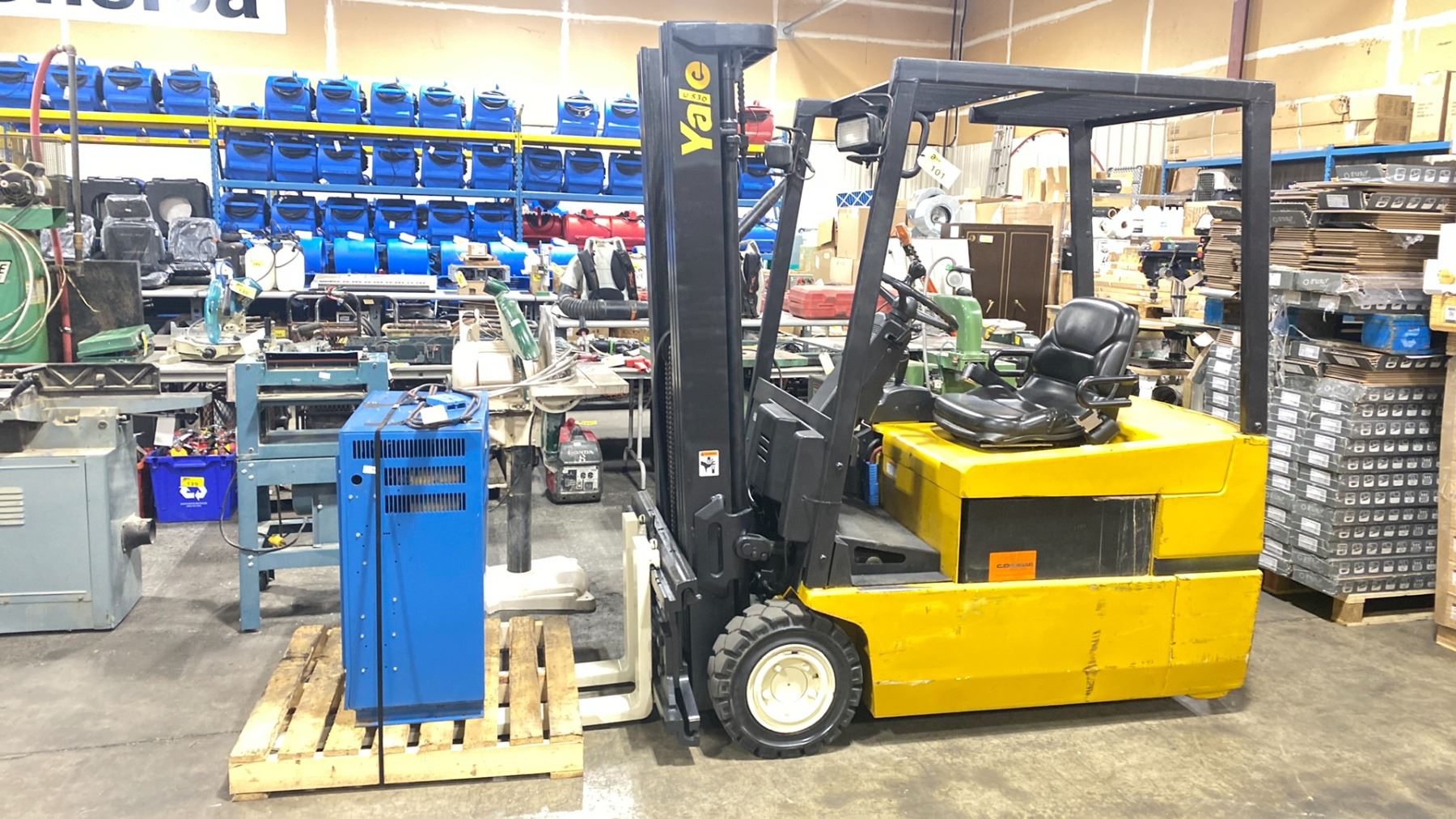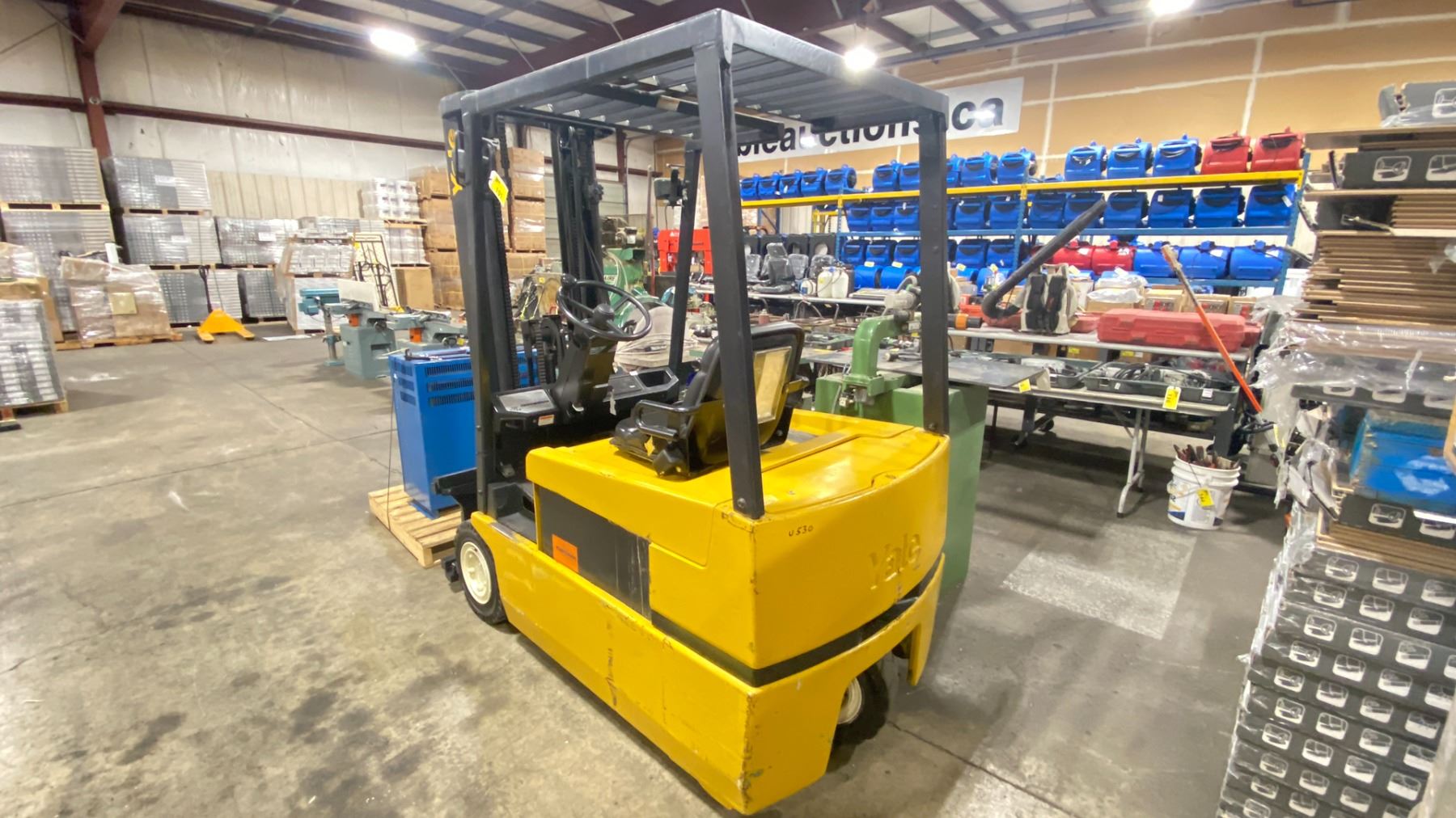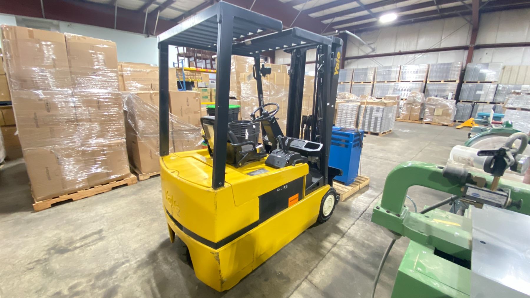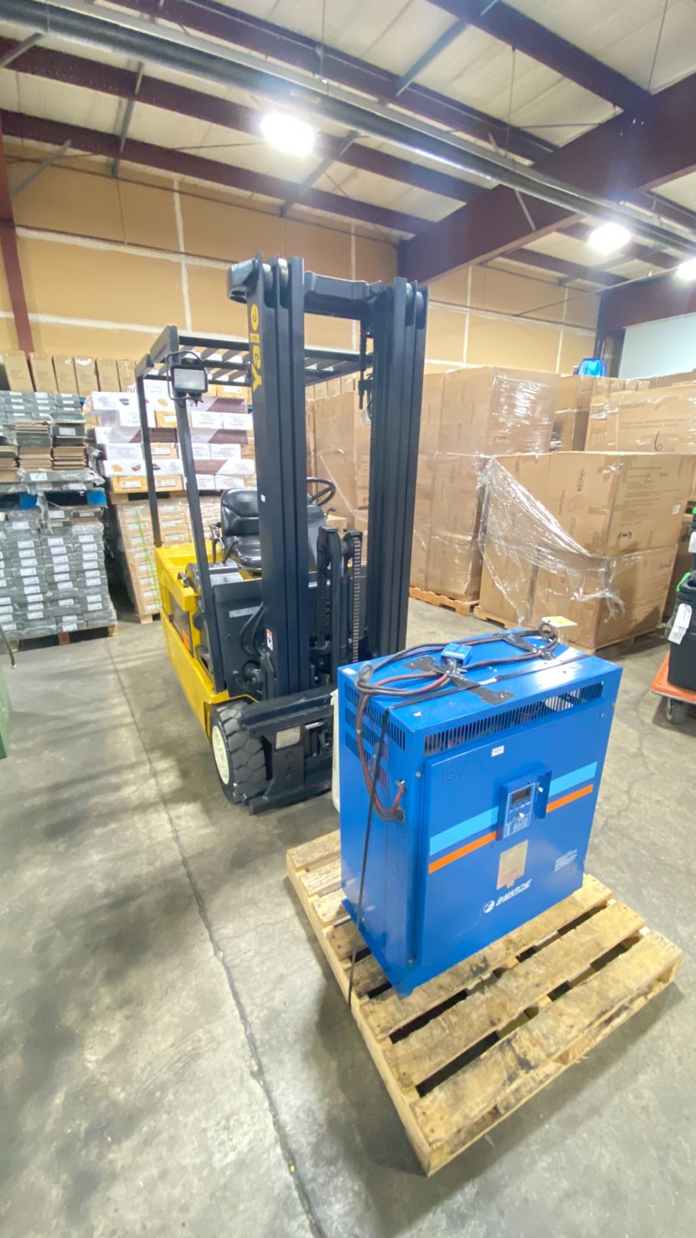 YALE ELECTRIC FORKLIFT (3 STAGE BOOM, 3950 LBS MAX.CAPACITY,SOLID TIRES MODEL ERP040TFN48SE082 COMES WITH LAMARCHE CHARGER