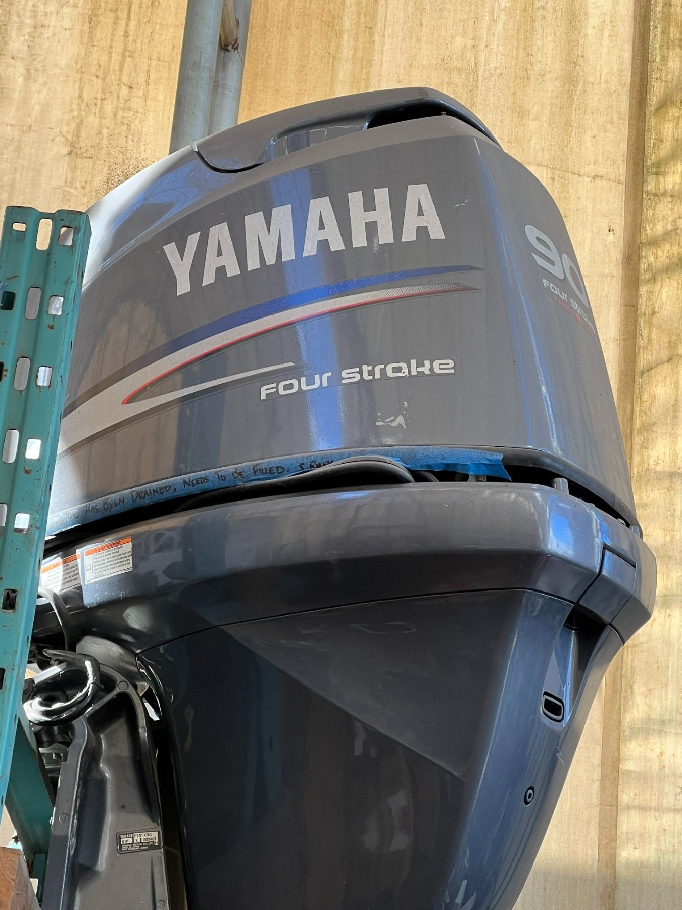 YAMAHA 90HP FOUR STROKE/FUEL INJECTION OUTBOARD BOAT MOTOR- UNKNOWN RUNNING CONDITION, MISSING PROP