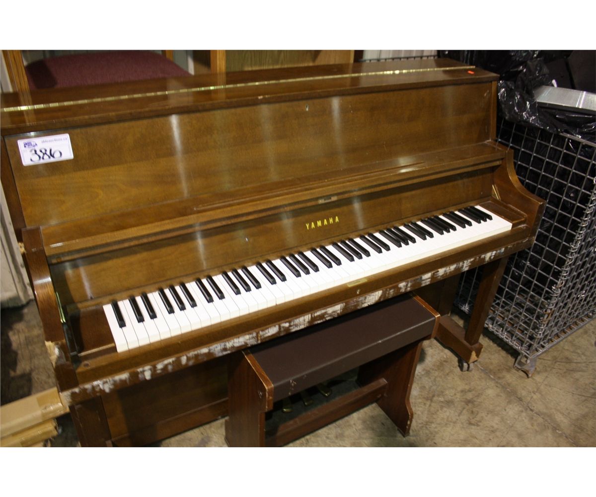 YAMAHA PIANO, 2 CHAIRS AND A BOOKCASE
