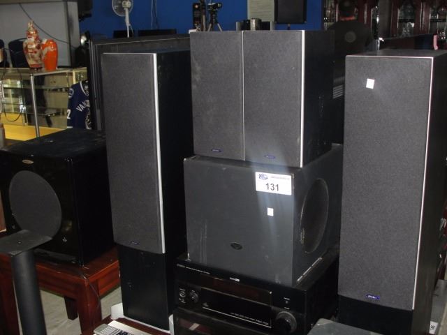YAMAHA RECEIVER RXV3900 INCLUDING ANTEC UNIT KLIPSCH BASS WOOFER AND 5 ENERGY SPEAKERS WITH REMOTE AND 2 SPEAKER STANDS