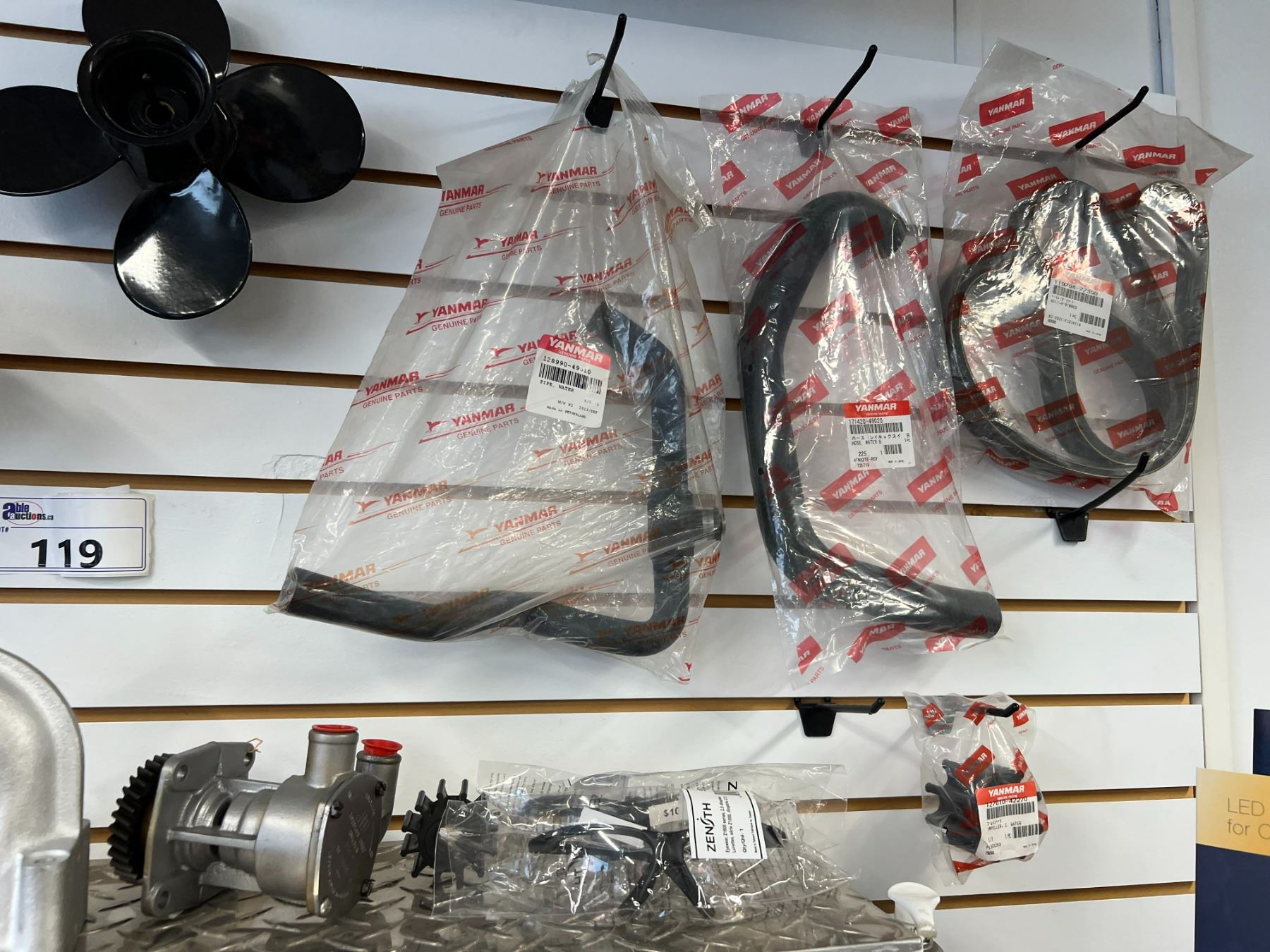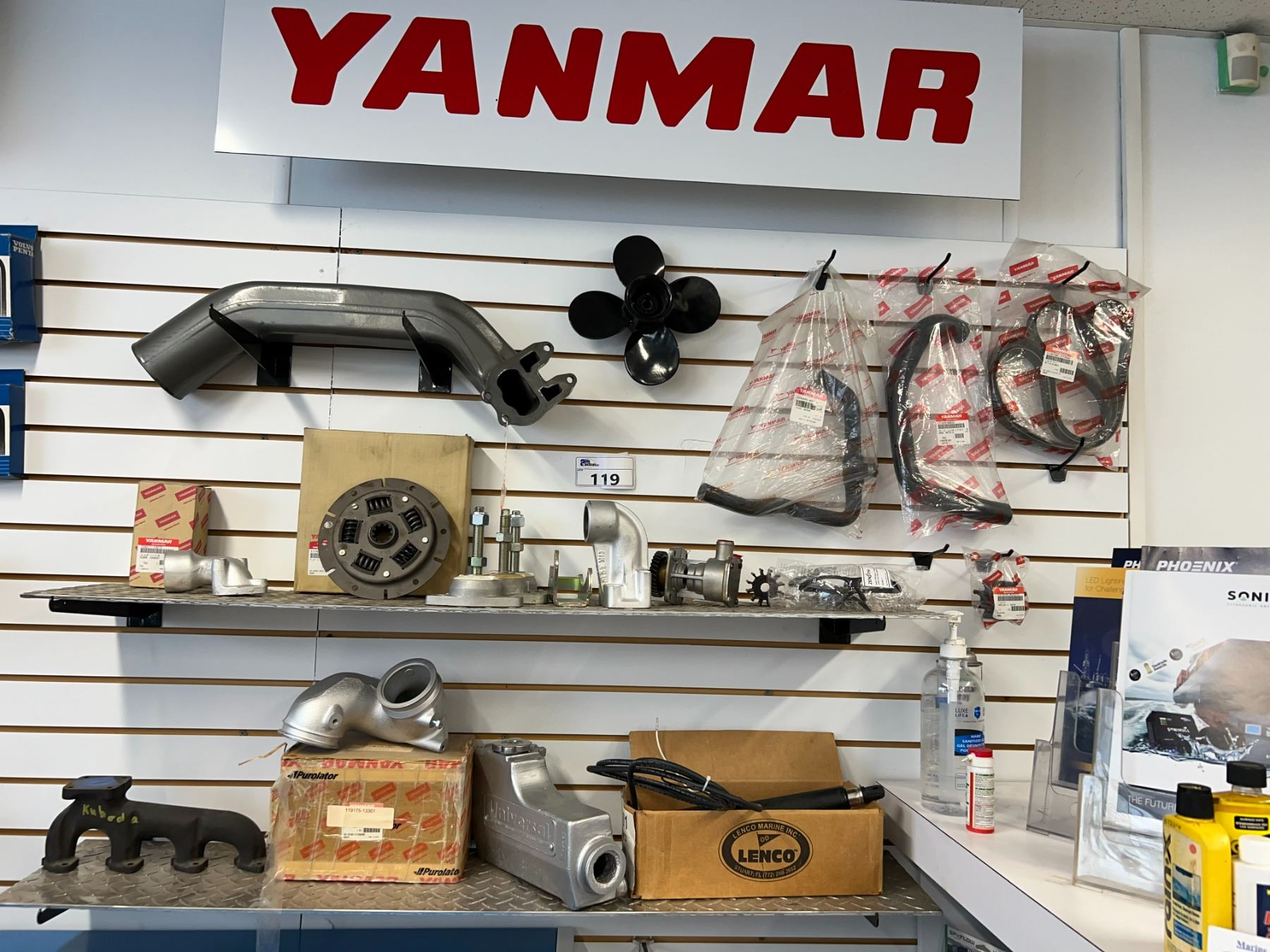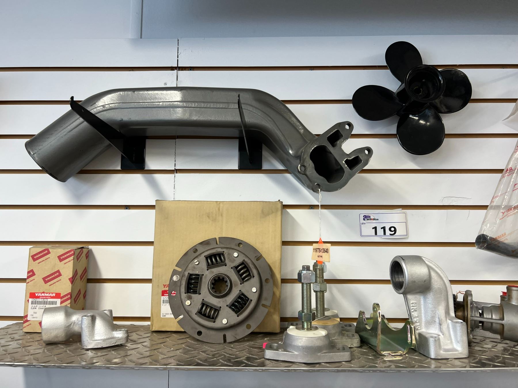YANMAR WALL DISPLAY INC MANIFOLDS, BELTS, PROP, PUMP, LENCO TOOL, YANMAR SIGN, ETC