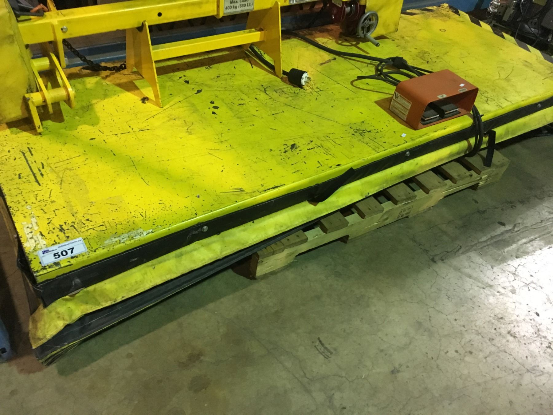 YELLOW 3' X 8' INDUSTRIAL ELECTRIC SCISSOR LIFT TABLE WITH FOOT CONTROL