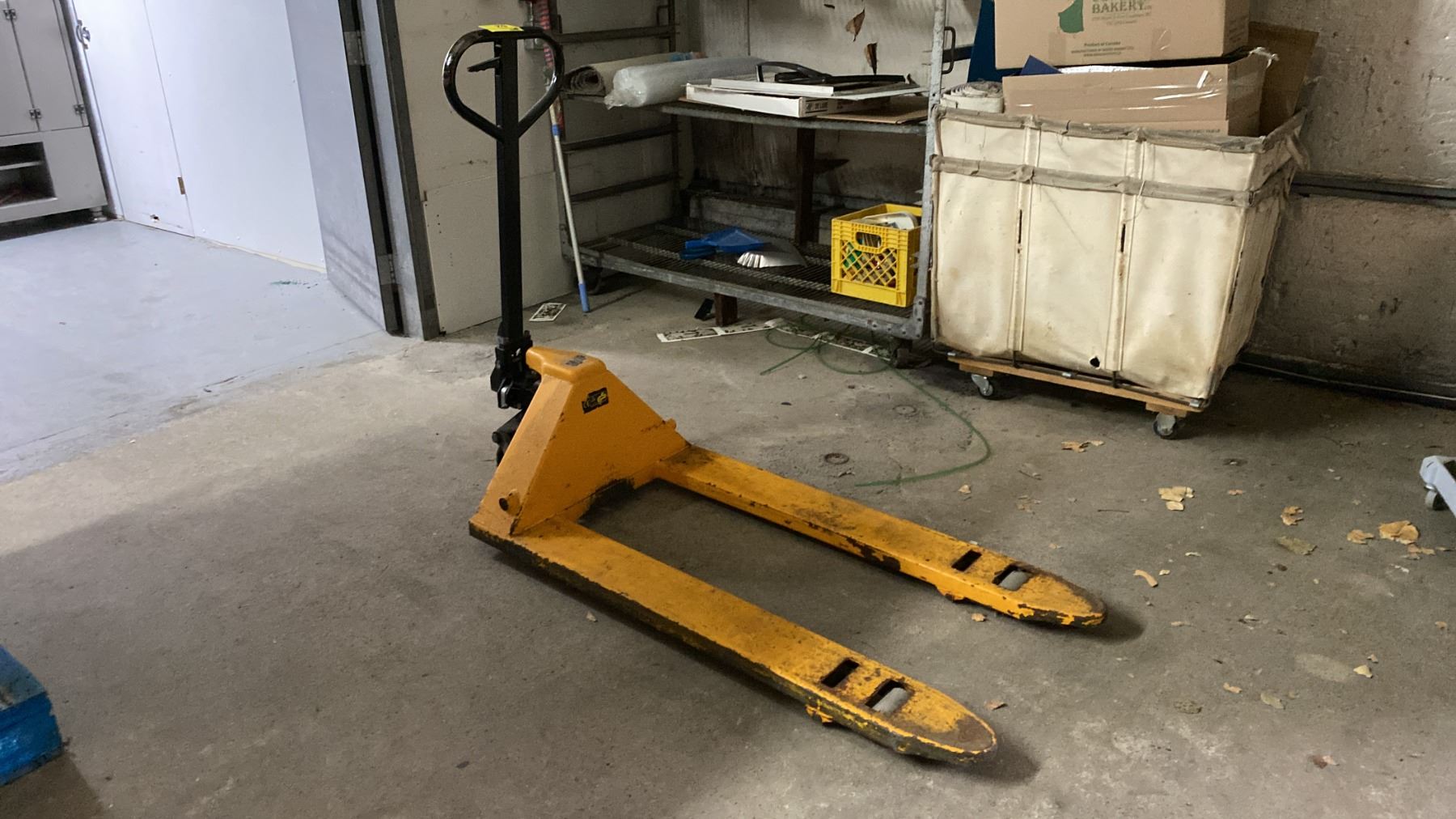 YELLOW 5,500 LBS CAPACITY COMMERCIAL MOBILE PALLET JACK *LAST DAY REMOVAL*