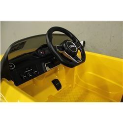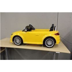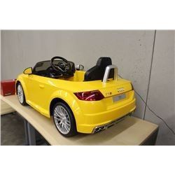 YELLOW AUDI TTS RIDE-IN/REMOTE CONTROL CAR, WITH WORKING LIGHTS, SOUNDS AND PEDALS