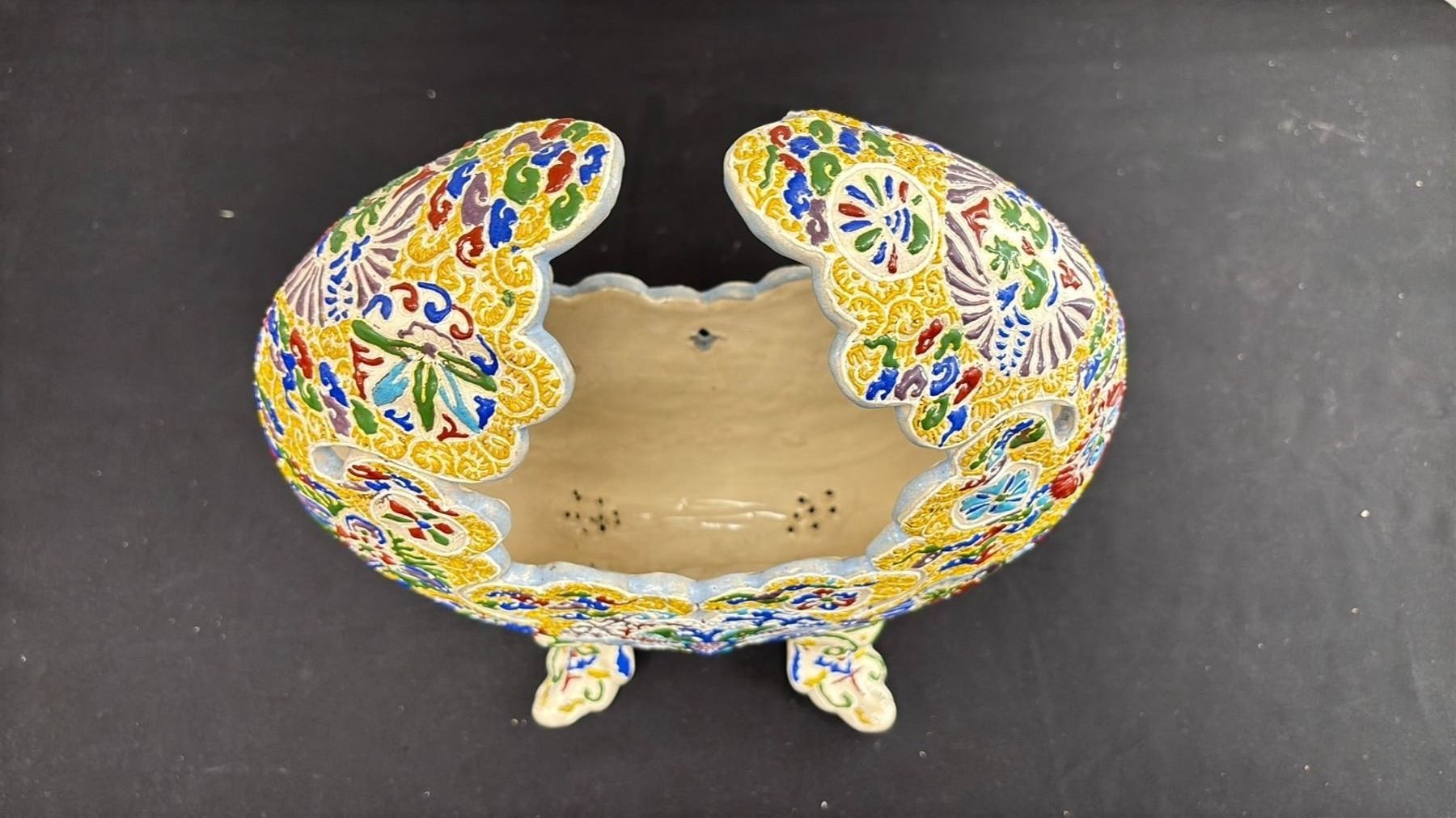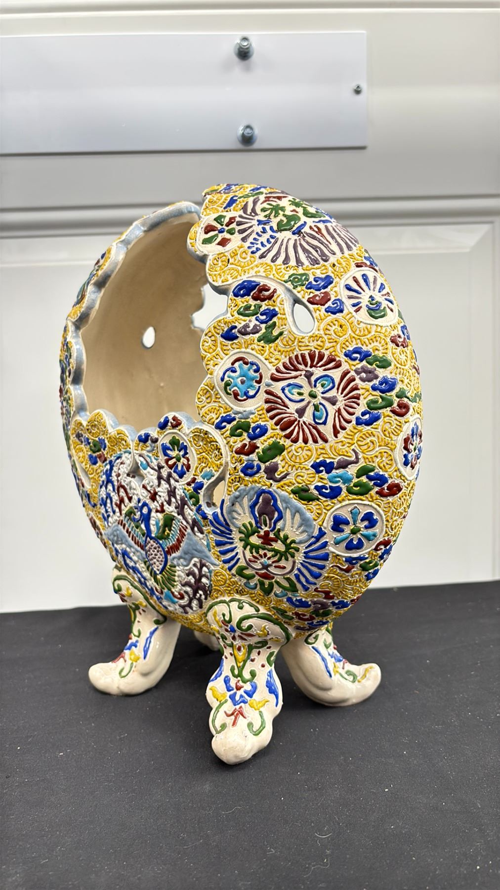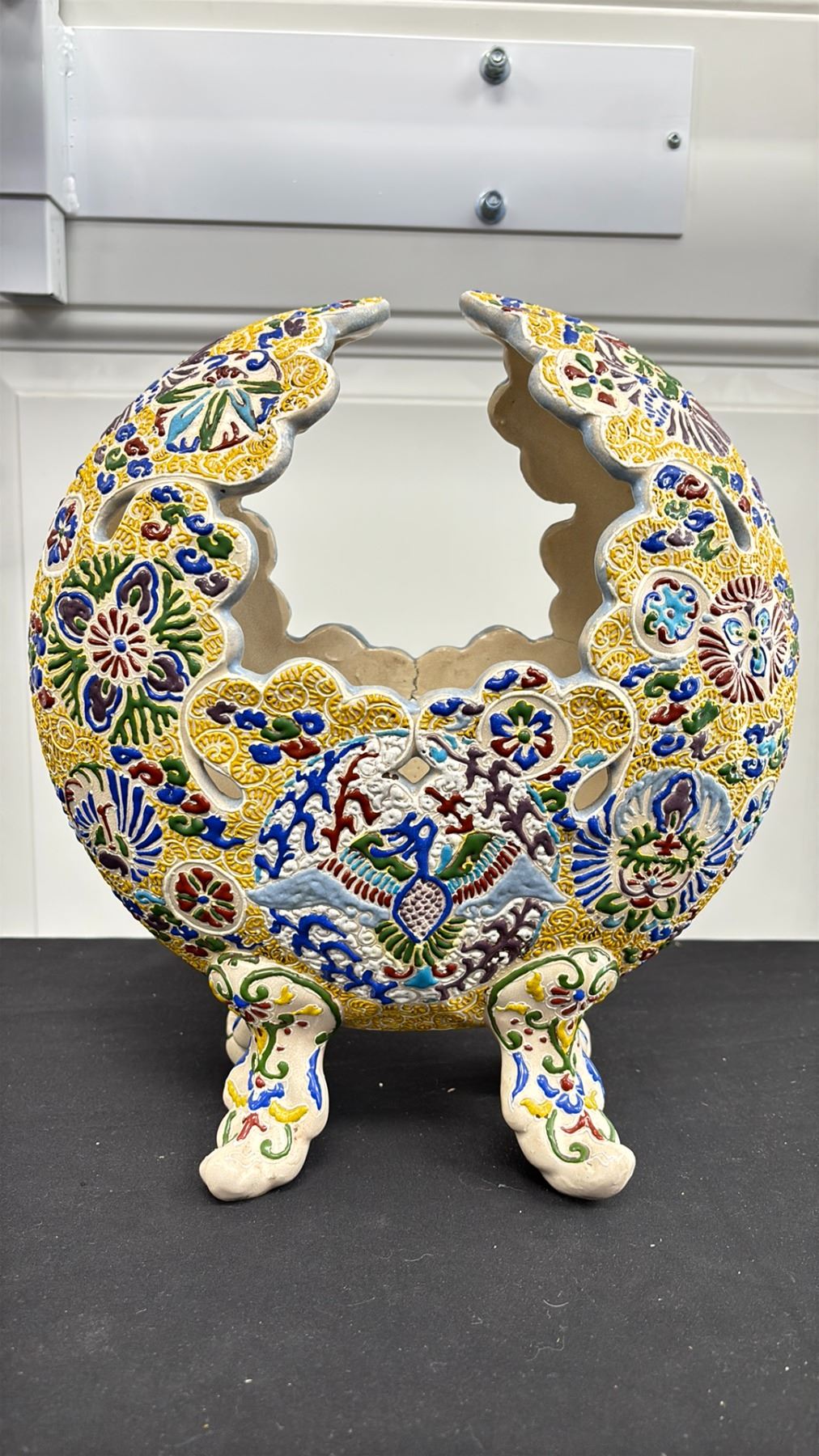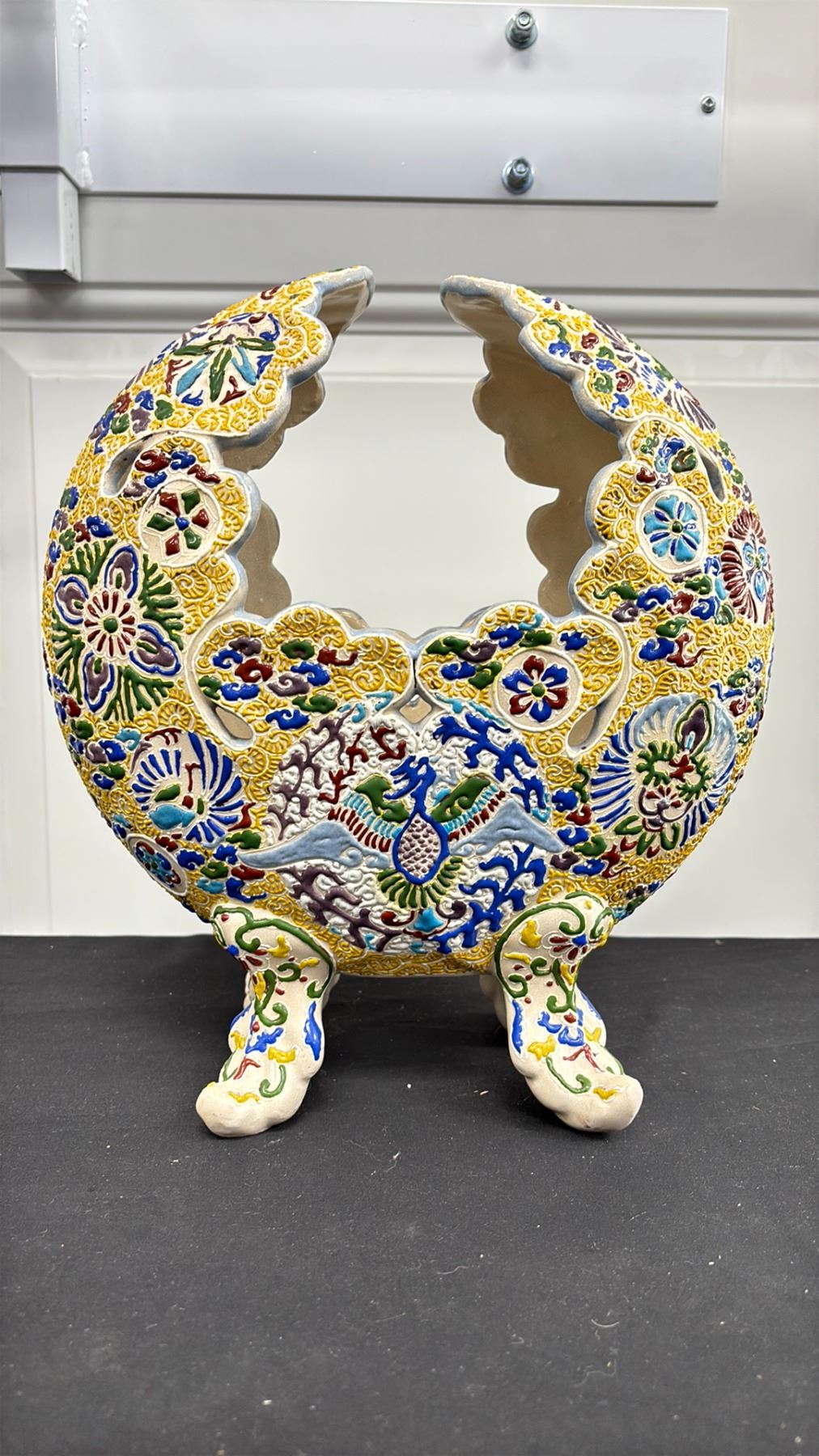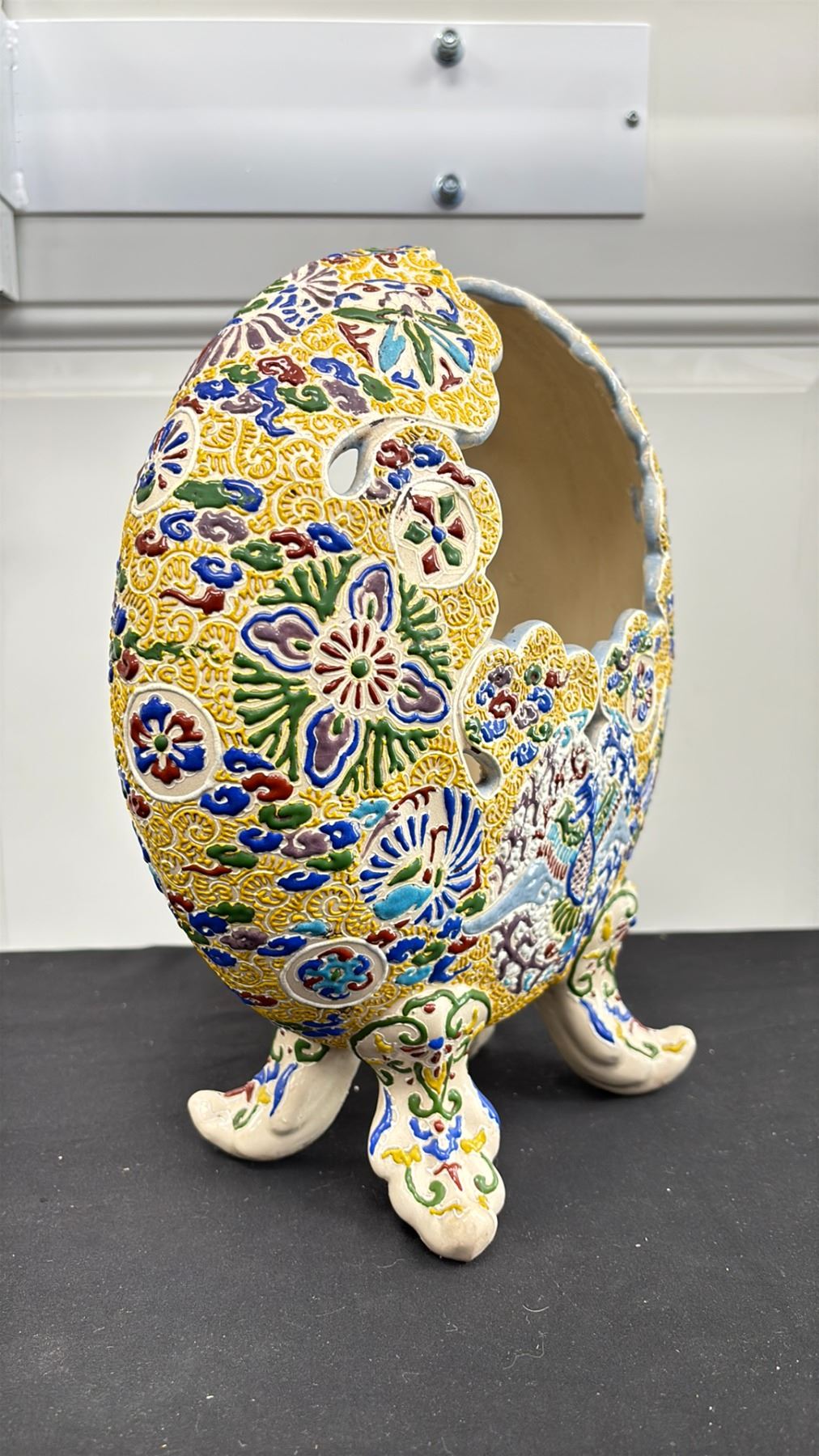 YELLOW BLUE ENAMEL CERAMIC VASE LARGE