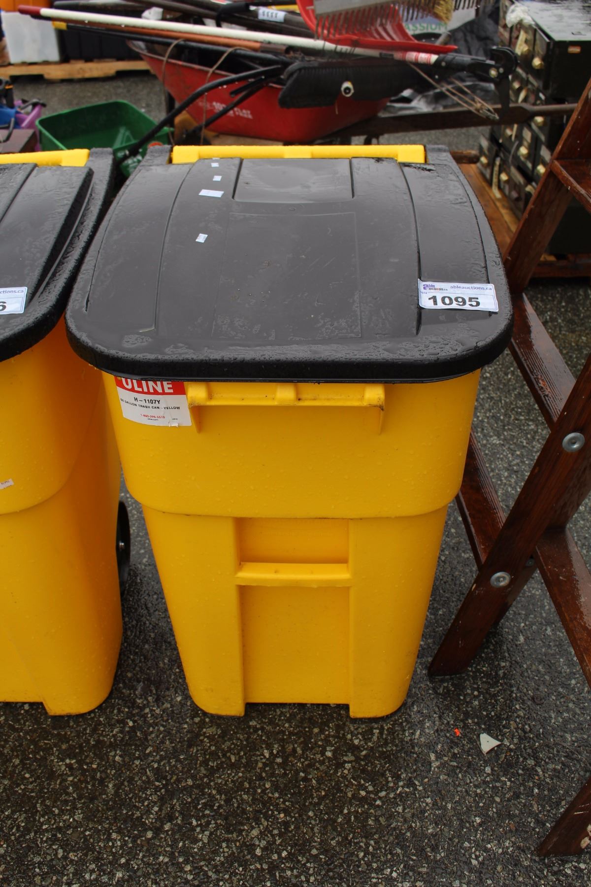 YELLOW HEAVY DUTY GARBAGE CANS WITH BLACK LIDS