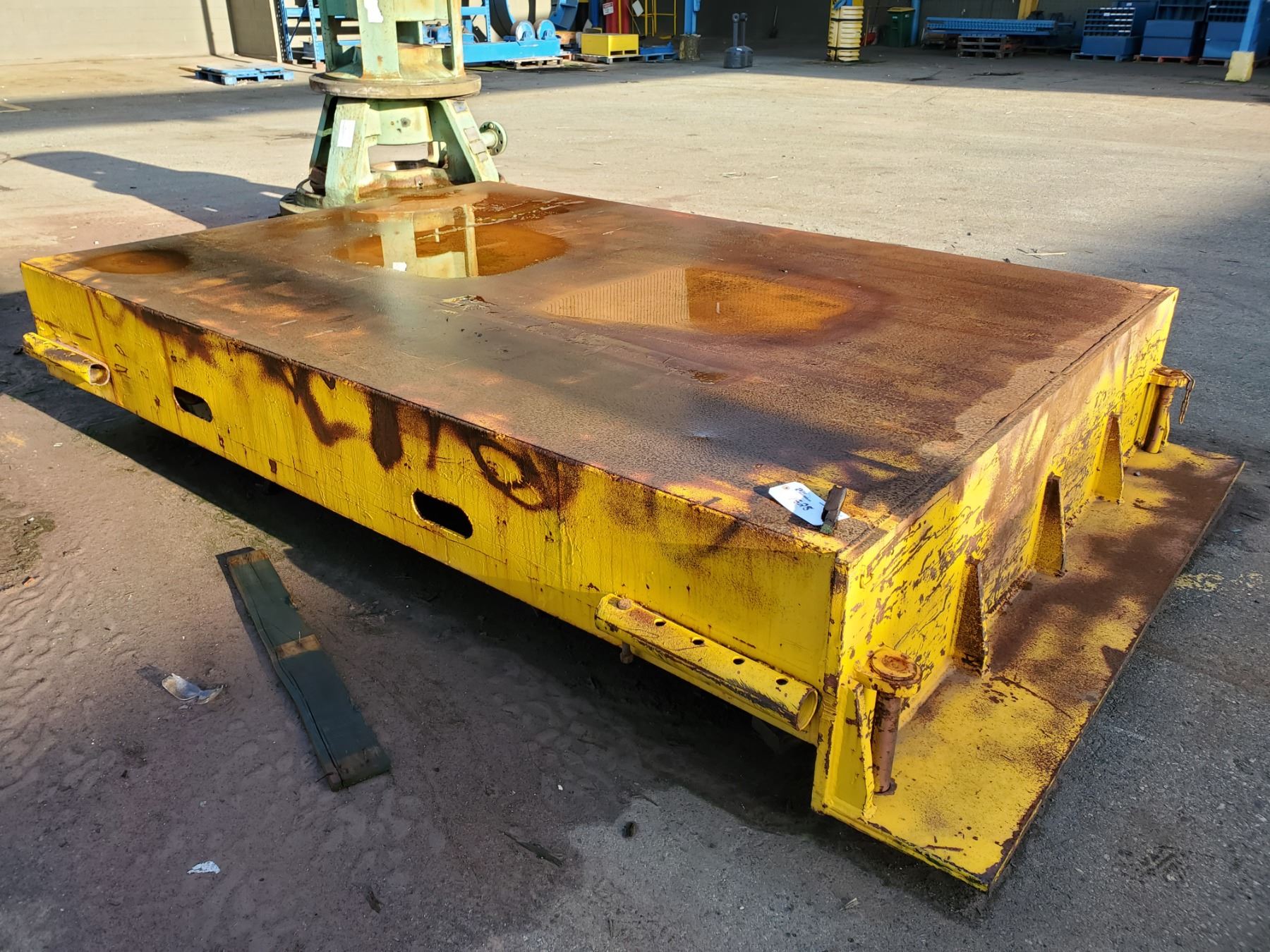 YELLOW HEAVY DUTY RAIL CART 120"L 83"W X 23"H WILL REQUIRE CRANE TRUCK