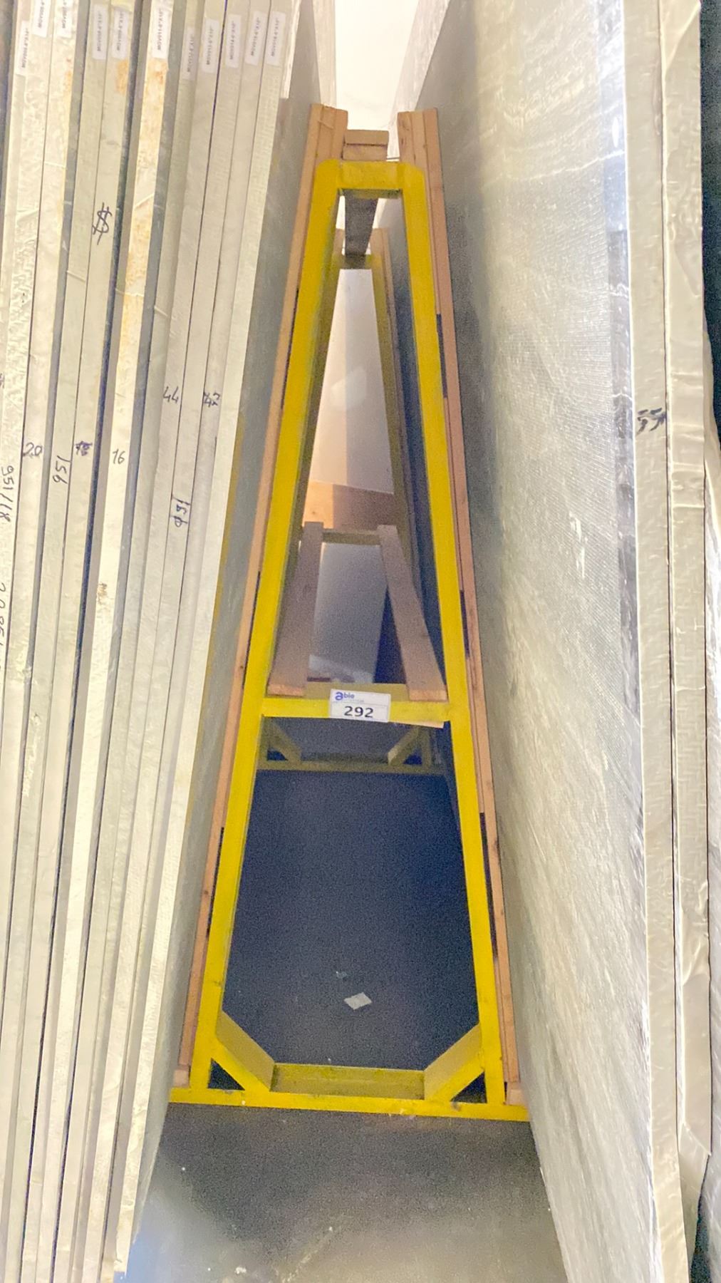 YELLOW METAL A-FRAME MATERIAL STORAGE RACK - 60  ACROSS X 60  WIDE AT BASE X 64 1/2  WIDE