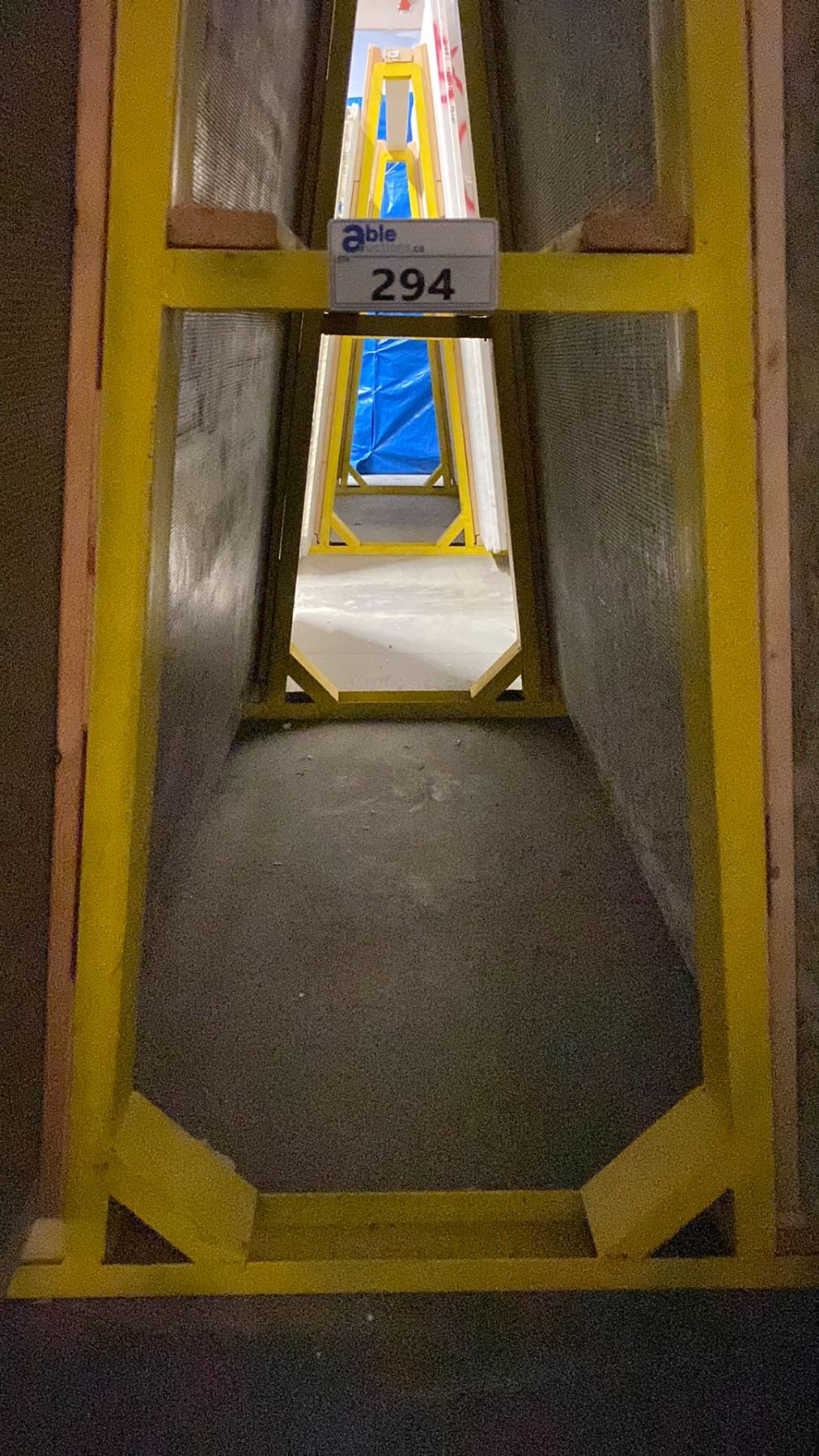 YELLOW METAL A-FRAME MATERIAL STORAGE RACK - 60  ACROSS X 60  WIDE AT BASE X 64 1/2  WIDE