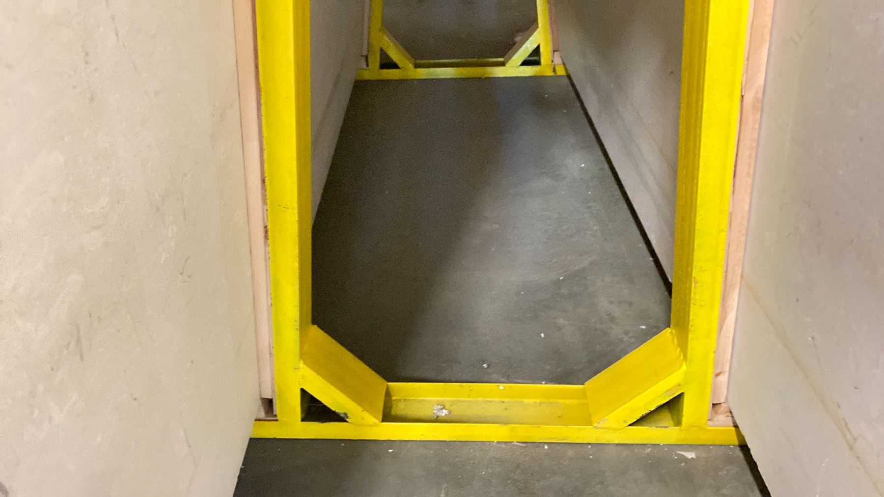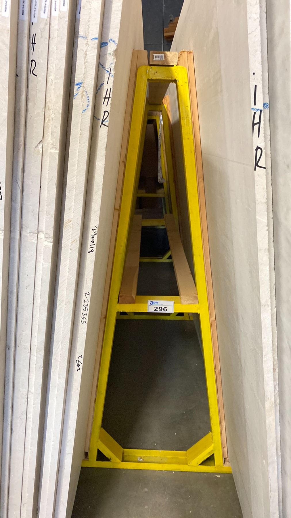 YELLOW METAL A-FRAME MATERIAL STORAGE RACK - 60" ACROSS X 60" WIDE AT BASE X 64 1/2" WIDE