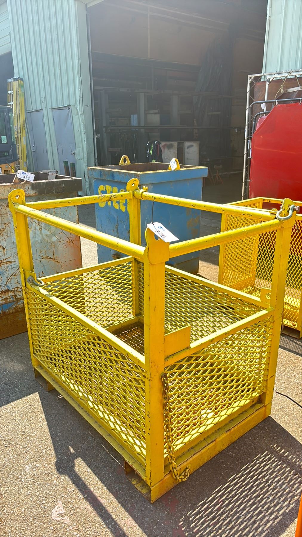 YELLOW METAL FABRICATED FORKLIFT MAN CAGE/ LIFT BASKET - 49.5"W X 35"D X 50"H