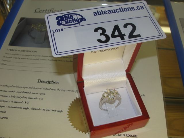 YELLOW TOPAZ COCKTAIL RING SET WITH 5 DIAMONDS INCLUDES $500 CERTIFICATE