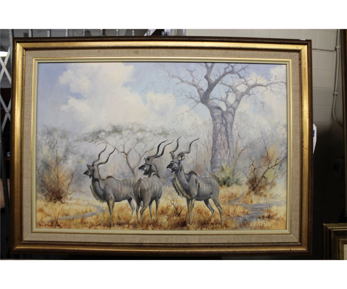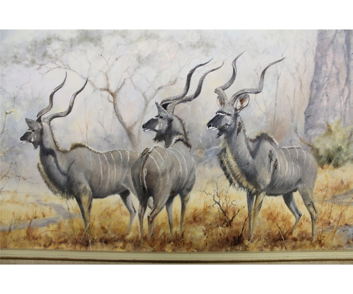 YVAN DUSHMANITCH, "GREATER KUDU" OIL ON CANVAS, SIGNED LOWER LEFT 30" W X 20" H COMMISSIONED DIRECTLY FROM THE ARTIST