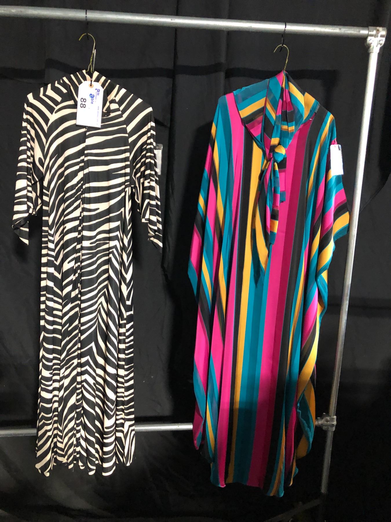 ZEBRA PRINT VINTAGE DRESS AND MULTI COLOUR DRESS COSTUME, DAILY RENTAL $45.00
