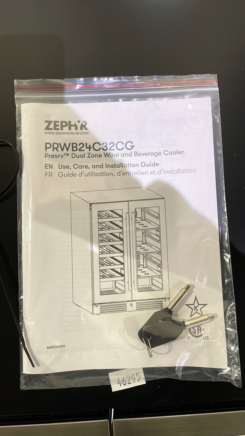 ZEPHYR PRESRV DUAL ZONE WIND AND BEVERAGE COOLER WITH KEYS PRWB24C32CG APPROX 24" X 23.5" X 35