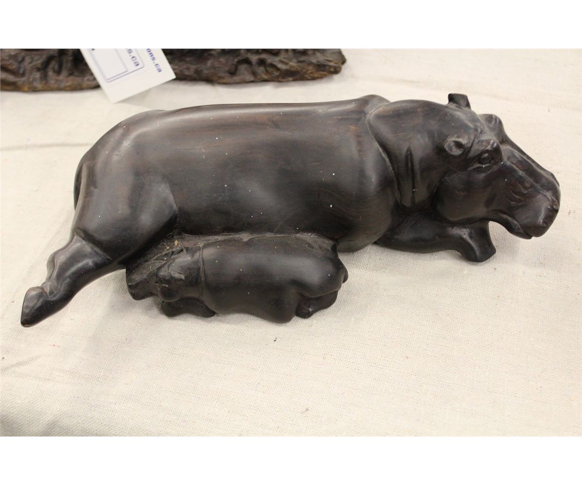 ZIMBABWEAN HIPPO AND CALF WOOD CARVING