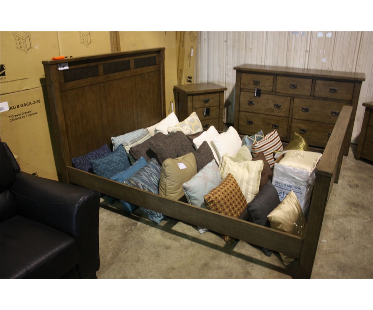 ZOCALO SLATE INLAID 5 PIECE BEDROOM SUITE INC: KING HEAD BOARD & FOOT BOARD, 2 NIGHT STANDS & A 7 DRAWER DRESSER