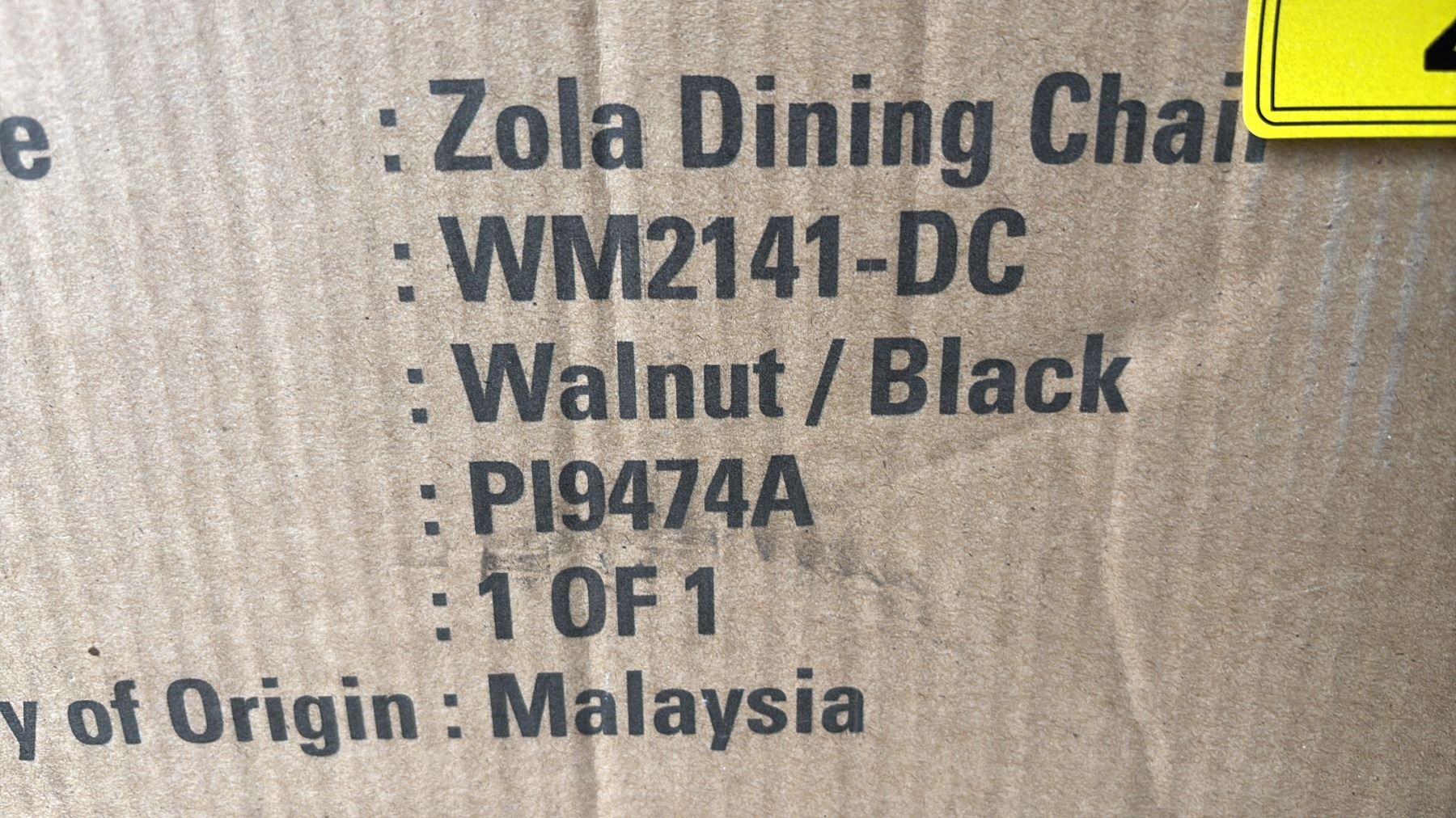 ZOLA WALNUT & BLACK DINING CHAIR - *IN BOX*