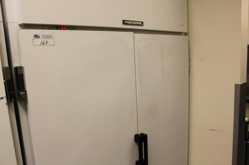 general dbl door reach in freezer